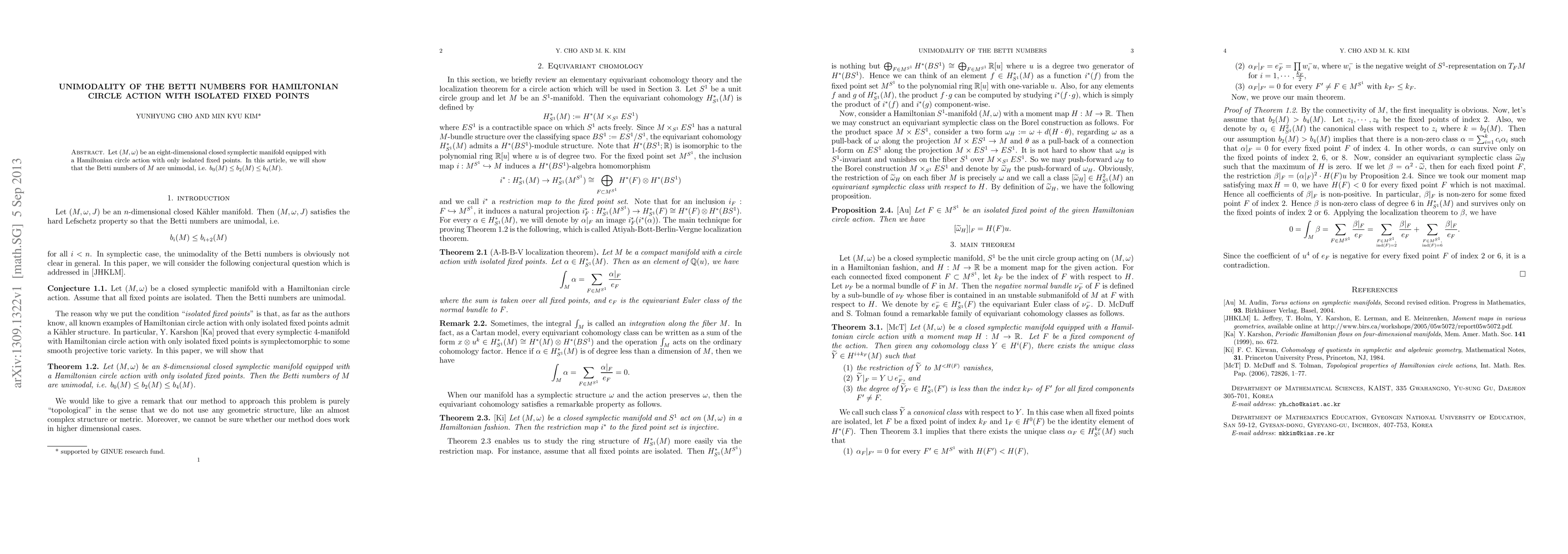 Let $(M,\omega)$ be an eight-dimensional closed symplectic manifold equipped with a Hamiltonian circle action with only isolated fixed points. In this article, we will show that the Betti numbers of $M$ are unimodal, i.e. $b_0(M) \leq b_2(M) \leq b_4(M)$.