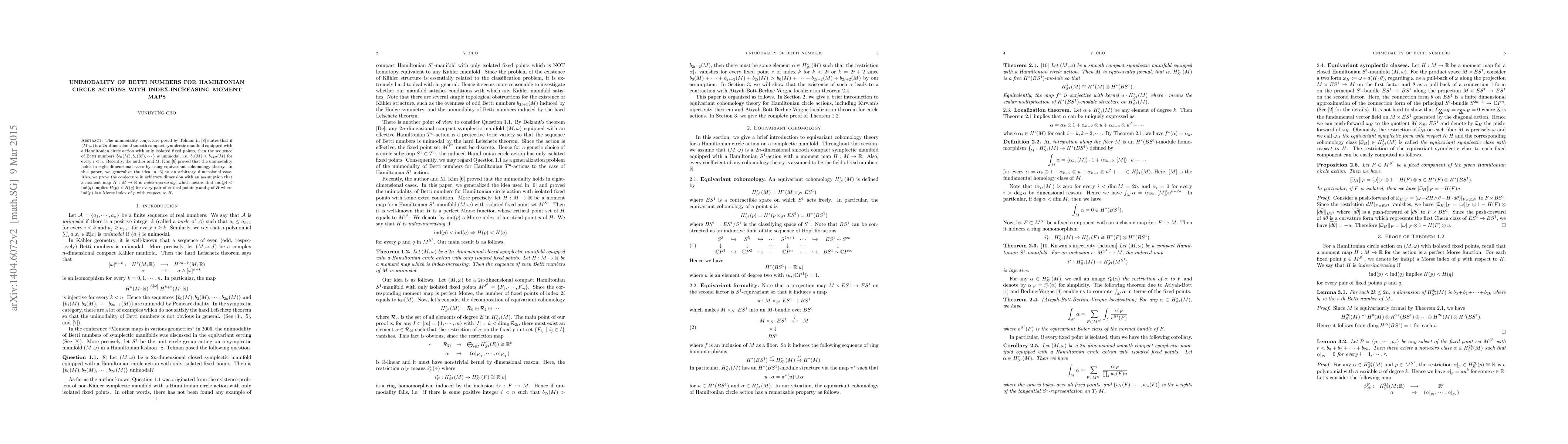 The unimodality conjecture posed by Tolman in the conference `Moment maps in Various Geometry" in 2005 states that if (M,w) is a 2n-dimensional smooth compact symplectic manifold equipped with a Hamiltonian circle action with only isolated fixed points, then the sequence of Betti numbers is unimodal. Recently, the author and M. Kim proved that the unimodality holds in eight-dimensional cases by using equivariant cohomology theory. In this paper, we generalize the idea in \cite{CK} to an arbitrary dimensional case. Also, we prove the conjecture in arbitrary dimension with an assumption that a moment map "index-increasing."