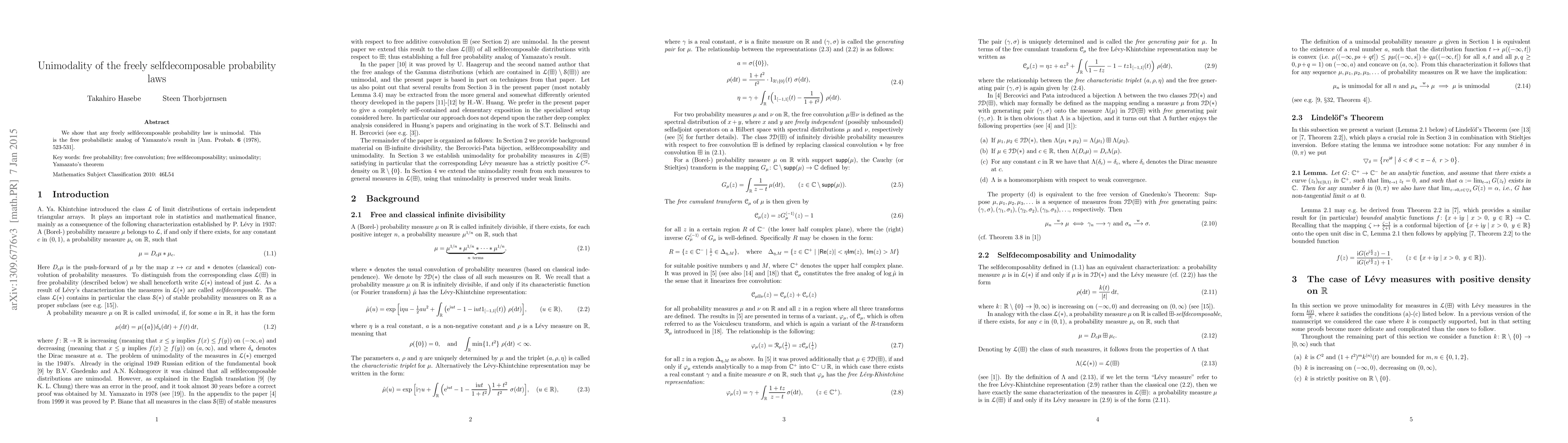 Summary: This paper demonstrates that any freely selfdecomposable probability law exhibits unimodality, establishing a free probabilistic analog of Yamazato's result from 1978. The findings extend the concept of unimodality to the realm of free probability.