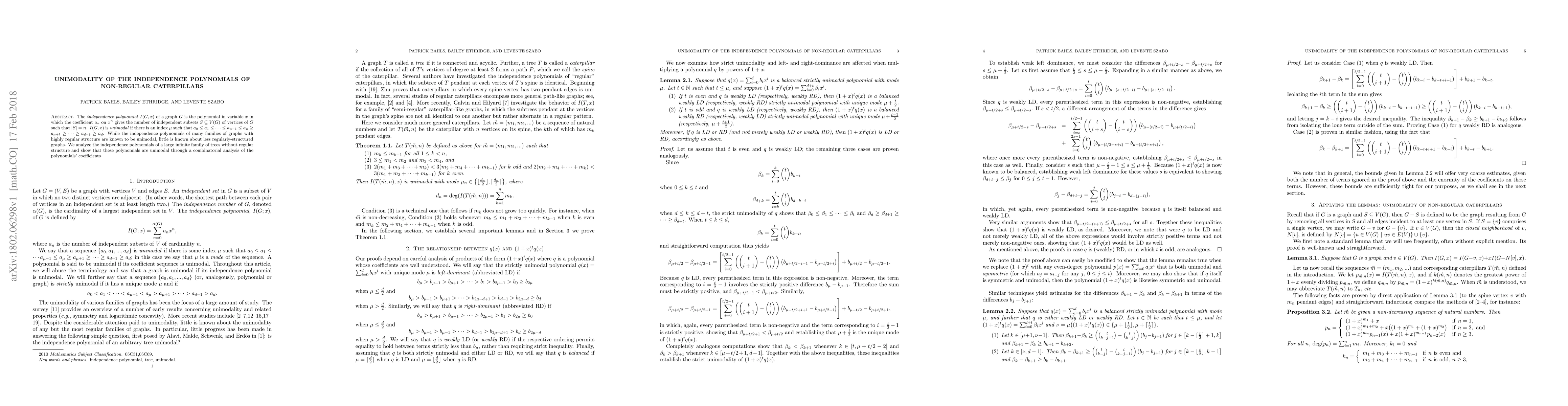 The paper examines the unimodality of independence polynomials for non-regular caterpillar trees, proving their polynomials are unimodal through a combinatorial analysis of their coefficients. This extends the understanding of unimodality beyond highly structured graphs to less regular structures.