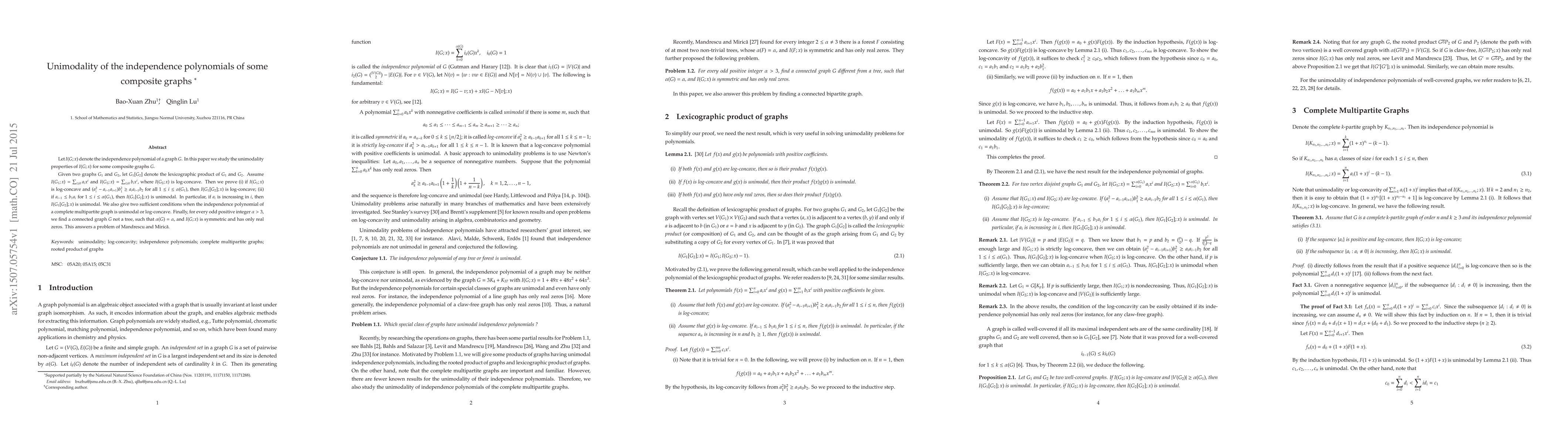 This paper investigates the unimodality properties of independence polynomials for certain composite graphs, particularly focusing on lexicographic products. It proves conditions under which these polynomials are log-concave or unimodal, addressing specific cases like complete multipartite graphs and providing an answer to a question posed by Mandrescu and Mirică regarding symmetric polynomials with real zeros.