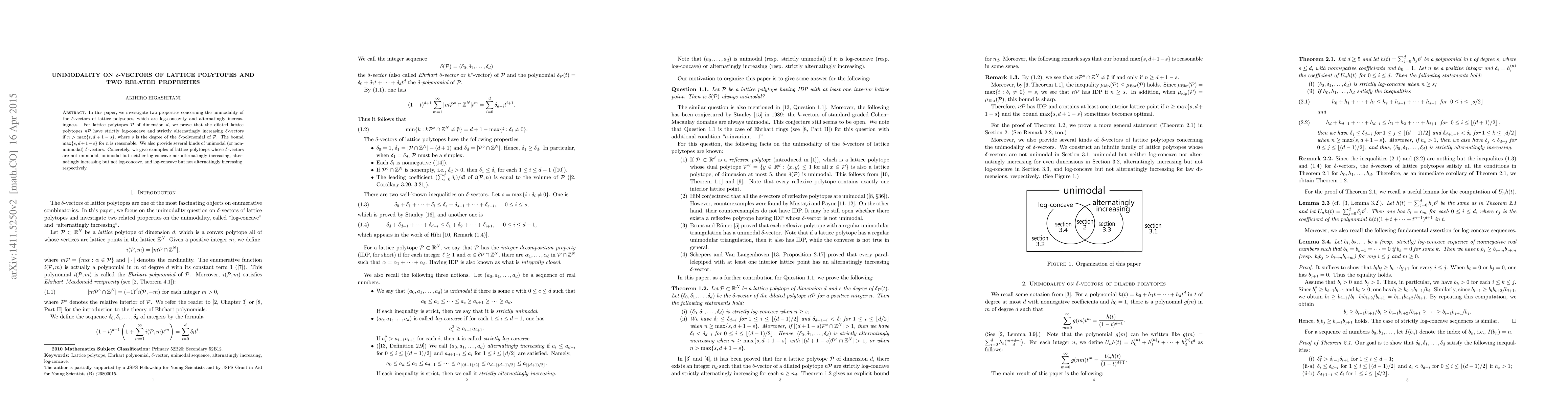 This paper explores the unimodality of the $\delta$-vectors of lattice polytopes, proving that dilated lattice polytopes $n\mathcal{P}$ exhibit strict log-concavity and alternatingly increasing $\delta$-vectors if $n > \max\{s,d+1-s\}$, where $s$ is the degree of $\mathcal{P}$'s $\delta$-polynomial. It also provides examples of $\delta$-vectors demonstrating various unimodal properties.