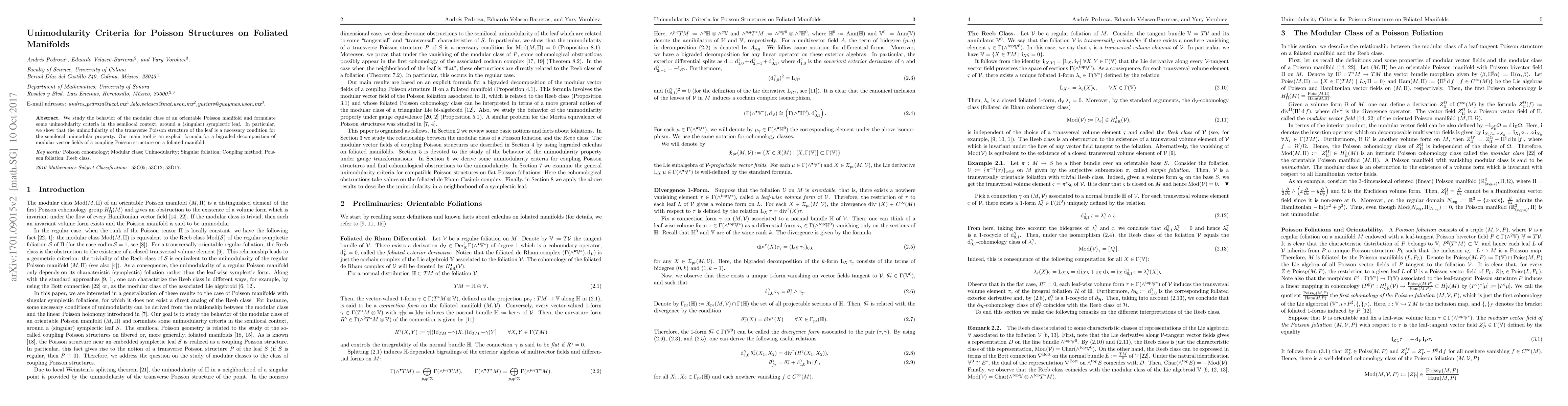 This paper formulates unimodularity criteria for Poisson structures on foliated manifolds, particularly focusing on the semilocal context around symplectic leaves. It establishes that unimodularity of the transverse Poisson structure is essential for the semilocal unimodular property, employing a bigraded decomposition of modular vector fields and exploring the modular class of Poisson foliations in relation to the Reeb class.
