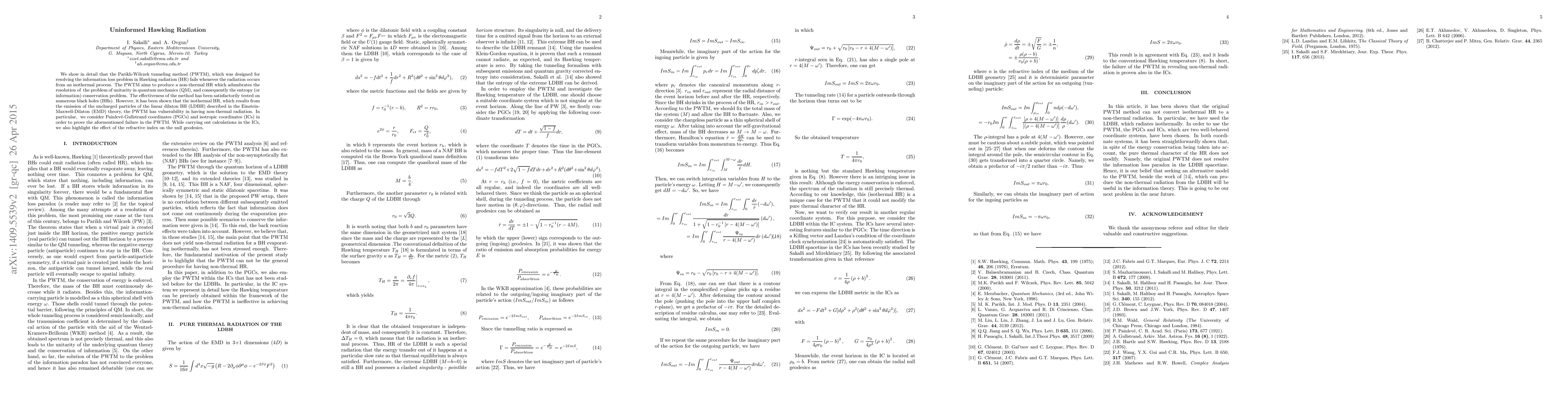 We show in detail that the Parikh-Wilczek tunneling method (PWTM), which was designed for resolving the information loss problem in Hawking radiation (HR)fails whenever the radiation occurs from an isothermal process. The PWTM aims to produce a non-thermal HR which adumbrates the resolution of the problem of unitarity in quantum mechanics (QM), and consequently the entropy (or information) conservation problem. The effectiveness of the method has been satisfactorily tested on numerous black holes (BHs). However, it has been shown that the isothermal HR, which results from the emission of the uncharged particles of the linear dilaton BH (LDBH) described in the Einstein-Maxwell-Dilaton (EMD) theory, the PWTM has vulnerability in having non-thermal radiation. In particular, we consider Painlev\'e-Gullstrand coordinates (PGCs) and isotropic coordinates (ICs) in order to prove the aformentioned failure in the PWTM. While carrying out calculations in the ICs, we also highlight the effect of the refractive index on the null geodesics.