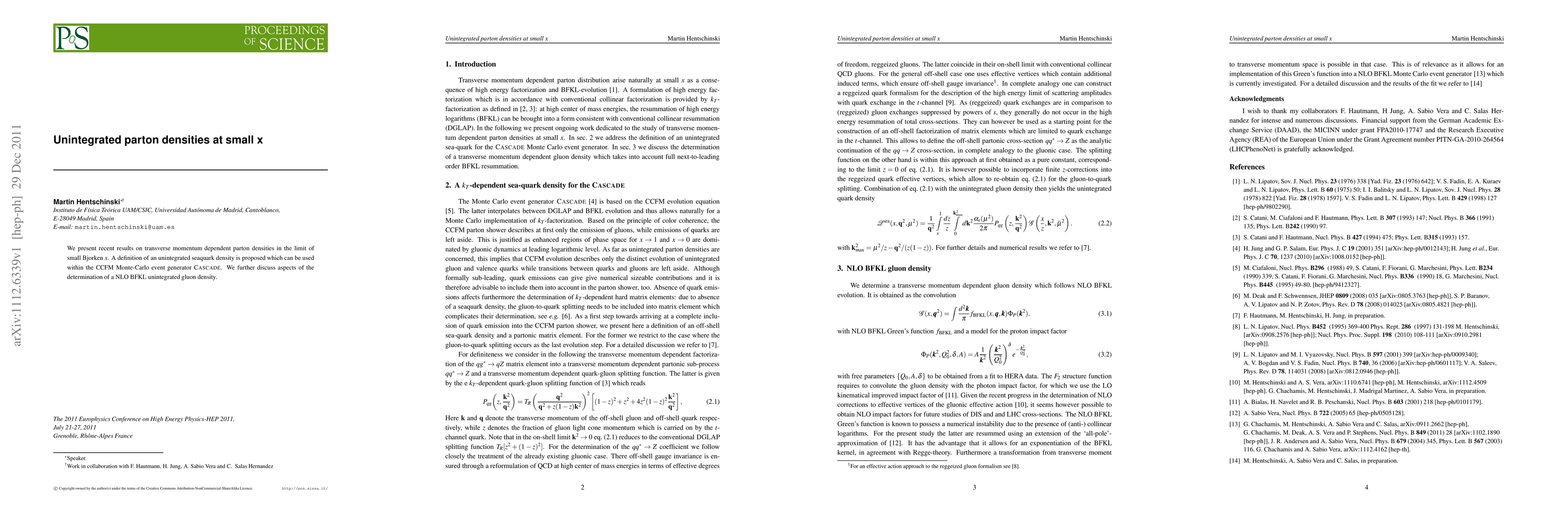 Researchers present new results on transverse momentum-dependent parton densities at small Bjorken x, proposing a method for calculating unintegrated seaquark and gluon densities.