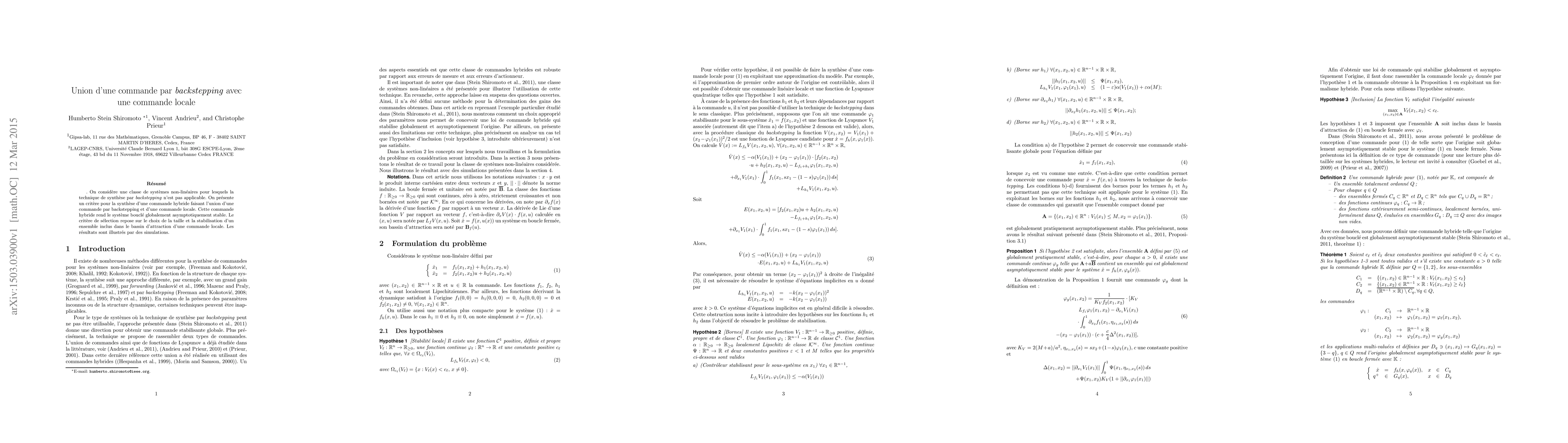 This paper proposes a hybrid feedback law combining a local stabilizer with a backstepping controller for systems where backstepping alone is not applicable. The hybrid law ensures global asymptotic stability, and the design is guided by the size of the compact set within the local controller's basin of attraction, validated through simulations.