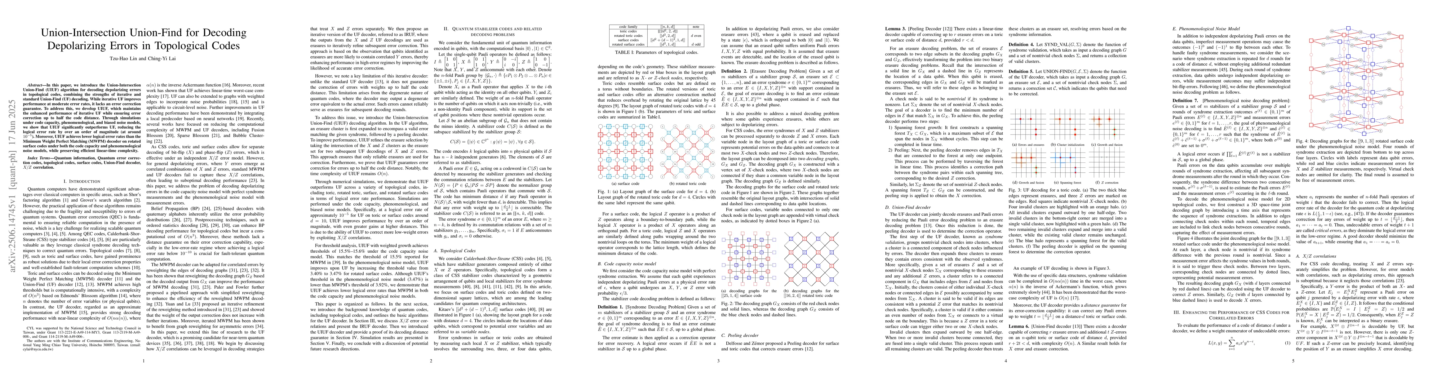This paper introduces the Union-Intersection Union-Find (UIUF) algorithm, which effectively decodes depolarizing errors in topological codes. UIUF combines iterative and standard Union-Find decoding, ensuring error correction up to half the code distance while outperforming previous methods like Minimum Weight Perfect Matching (MWPM) under various noise models, all while maintaining efficient linear-time complexity.