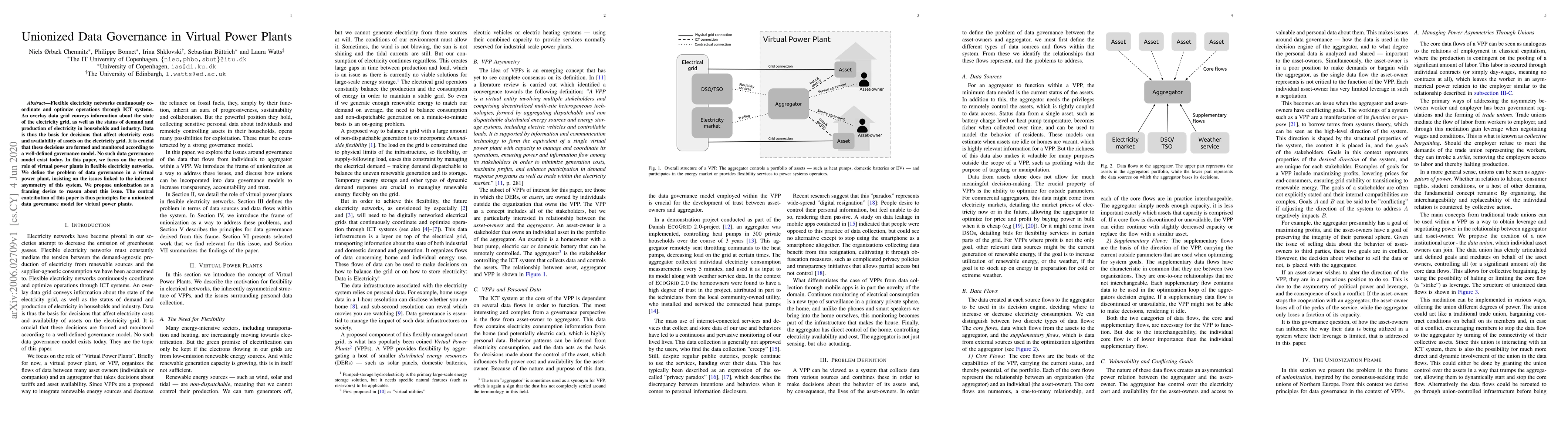 This paper addresses the lack of a data governance model in virtual power plants, emphasizing the asymmetry inherent in these systems. It proposes unionization as a framework to tackle data governance issues, presenting principles for a unionized data governance model to optimize electricity network operations.