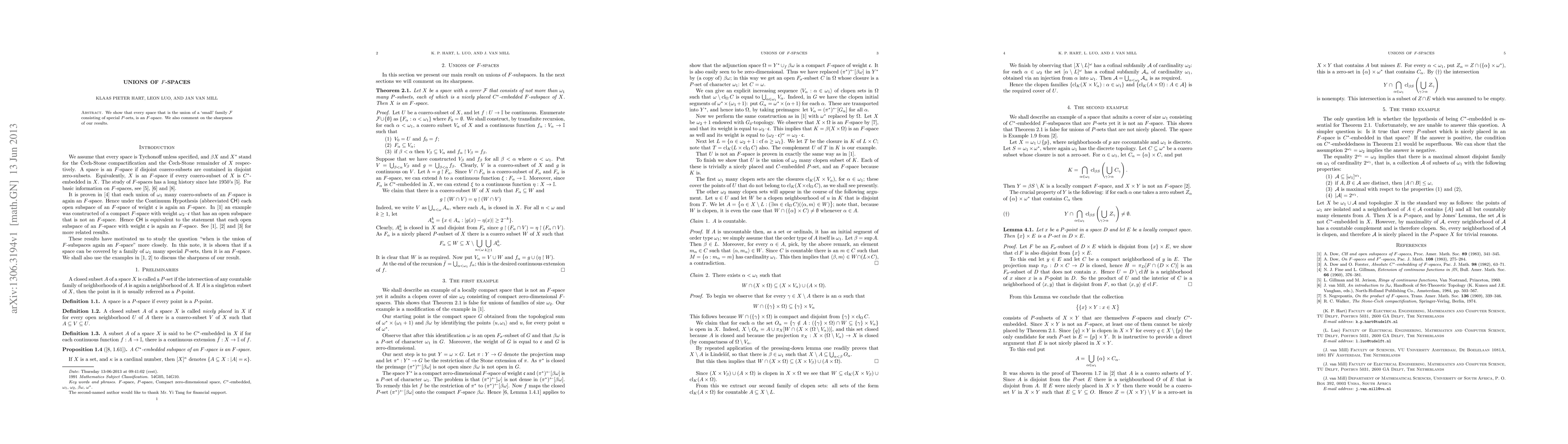 A new study shows that spaces formed from the union of small families of F-spaces are also F-spaces, with implications for understanding topological properties of these spaces.