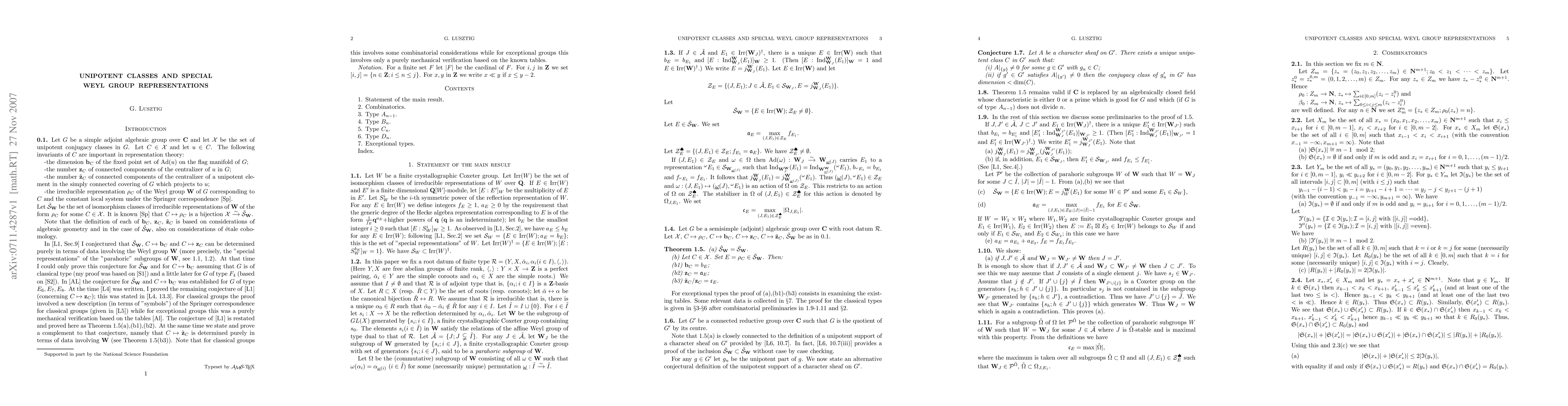 Summary: The research demonstrates that unipotent conjugacy class invariants in connected semisimple groups can be fully reconstructed using Weyl group data, linking group representation theory to Weyl group characteristics.