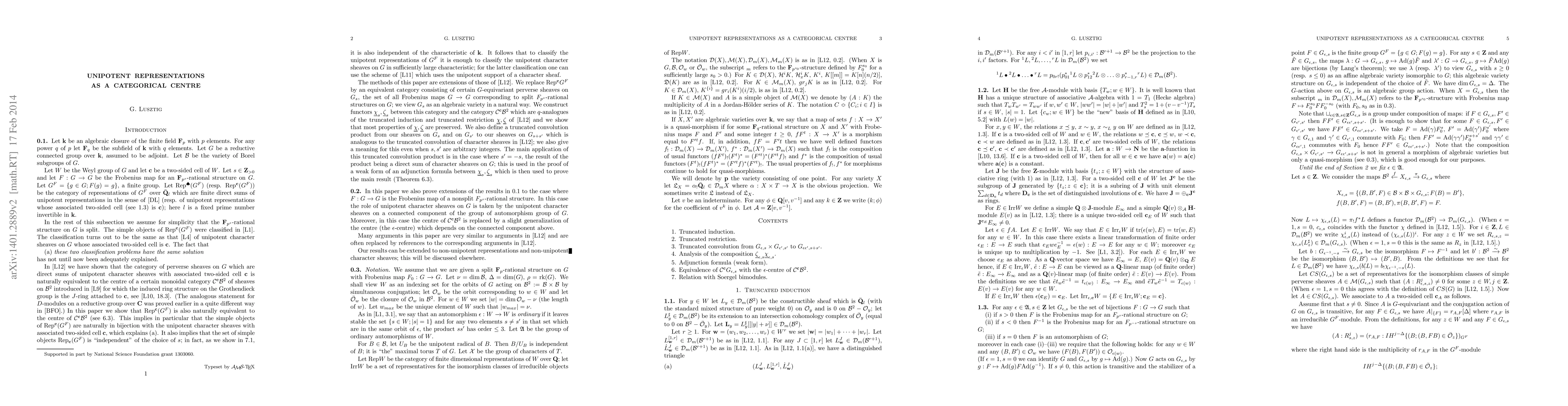 This paper demonstrates an equivalence between the category of unipotent representations of G(F_q) within a fixed two-sided cell and the centre of a monoidal category of sheaves on the product of two flag manifolds of G. It also extends this result to nonsplit groups.