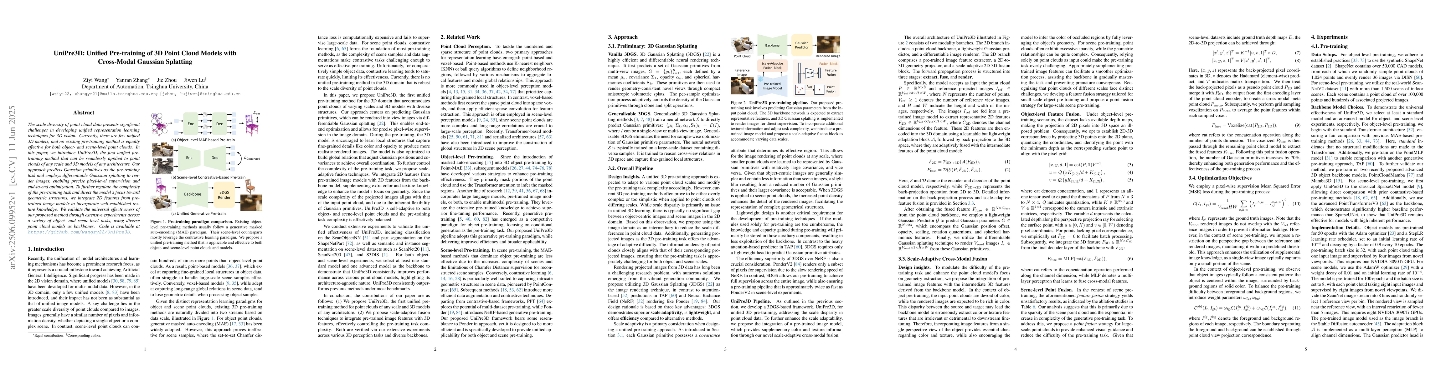UniPre3D introduces a unified pre-training method for 3D point cloud models, enabling seamless application across various scales and architectures. It achieves precise pixel-level supervision through differentiable Gaussian splatting and incorporates 2D features from image models to regulate complexity and geometry.