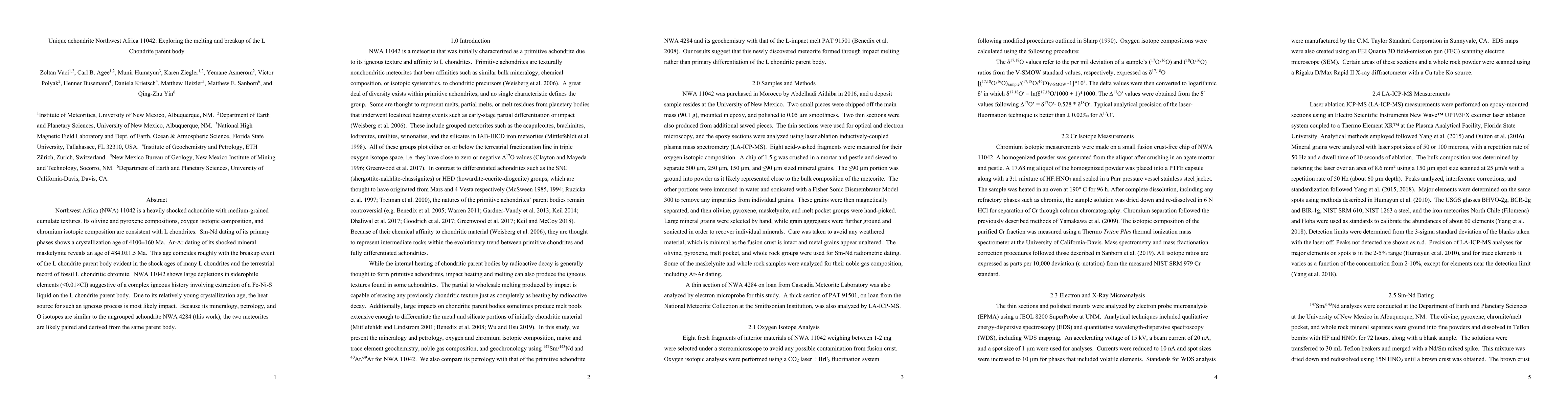 Summary: Northwest Africa (NWA) 11042 is a unique achondrite with cumulate textures, consistent with L chondrites in composition. Its crystallization age suggests an impact-driven igneous history, while Ar-Ar dating indicates a breakup event of the L chondrite parent body around 484 Ma.