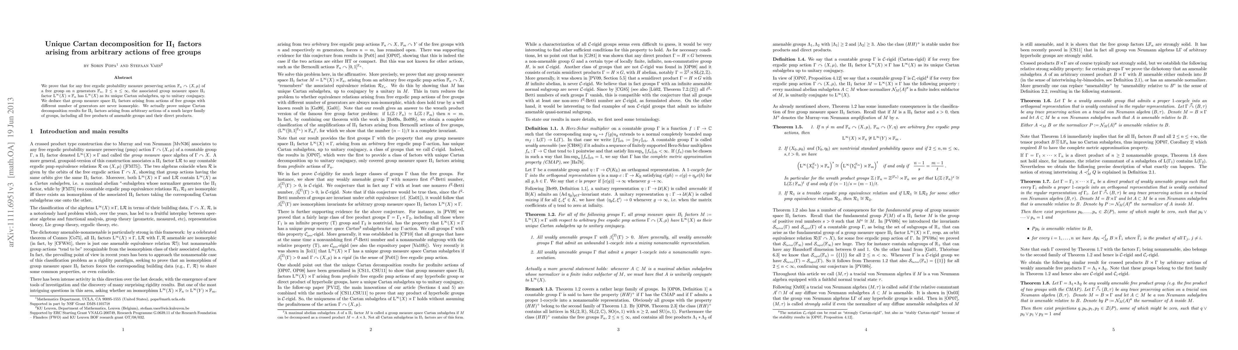 Summary: This paper establishes that the unique Cartan subalgebra of the group measure space II_1 factor derived from an ergodic action of a free group is $L^\infty(X)$, leading to the conclusion that II_1 factors from free groups with different generator numbers are non-isomorphic. The results extend to a broad class of group actions including free products of amenable groups.