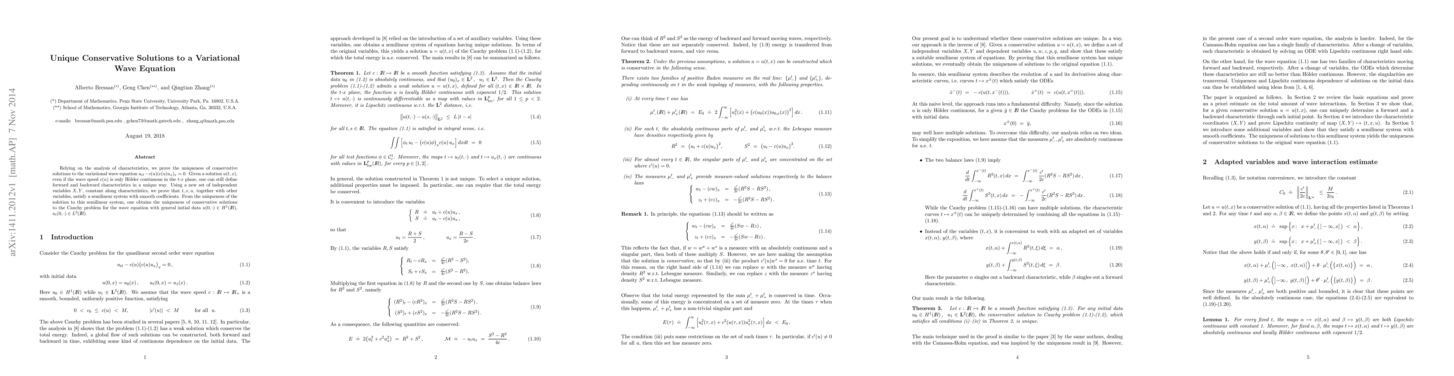 Researchers prove that conservative solutions to a specific wave equation are unique, even if the speed of sound is only slightly variable, using characteristics and a new set of independent variables.