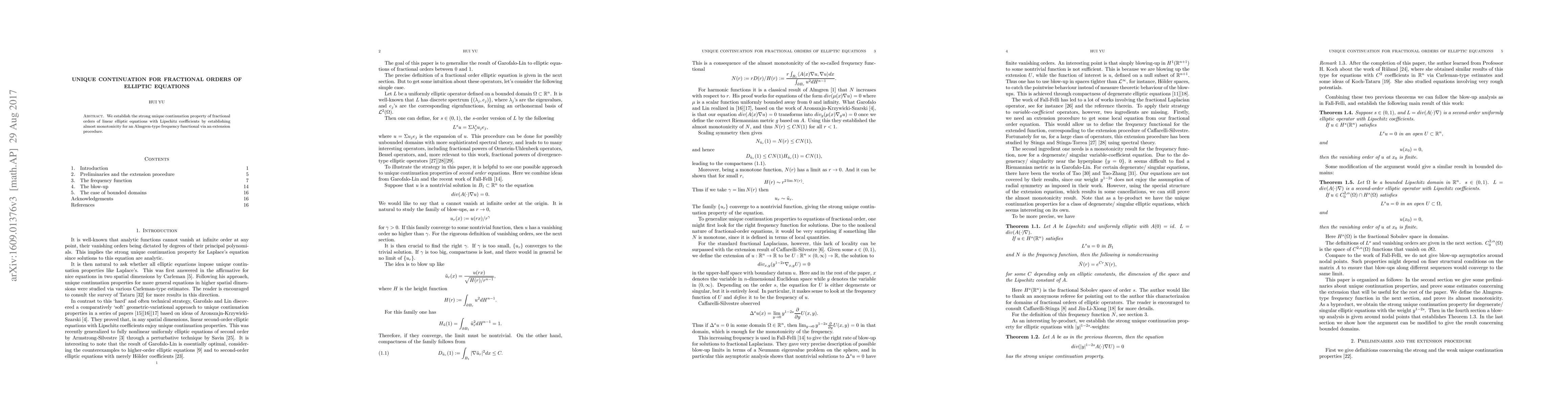 Summary: This paper proves the strong unique continuation property for fractional orders of linear elliptic equations with Lipschitz coefficients, achieved through the monotonicity of an Almgren-type frequency functional via an extension technique.