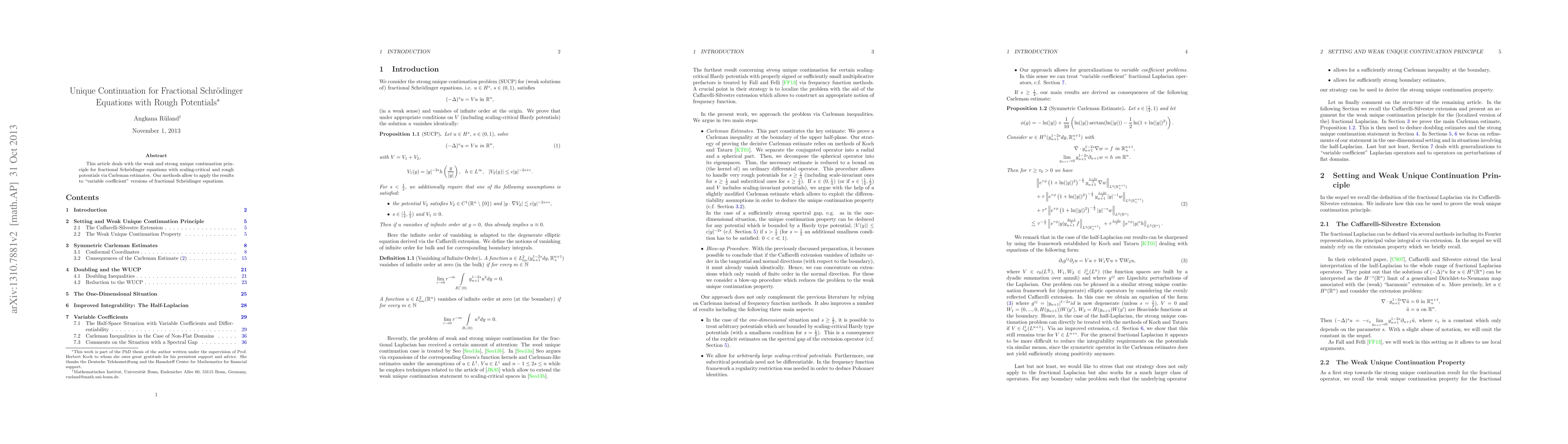 This paper investigates the unique continuation properties for fractional Schrödinger equations with rough potentials, proving weak and strong unique continuation principles using Carleman estimates, and extending the results to variable coefficient forms.