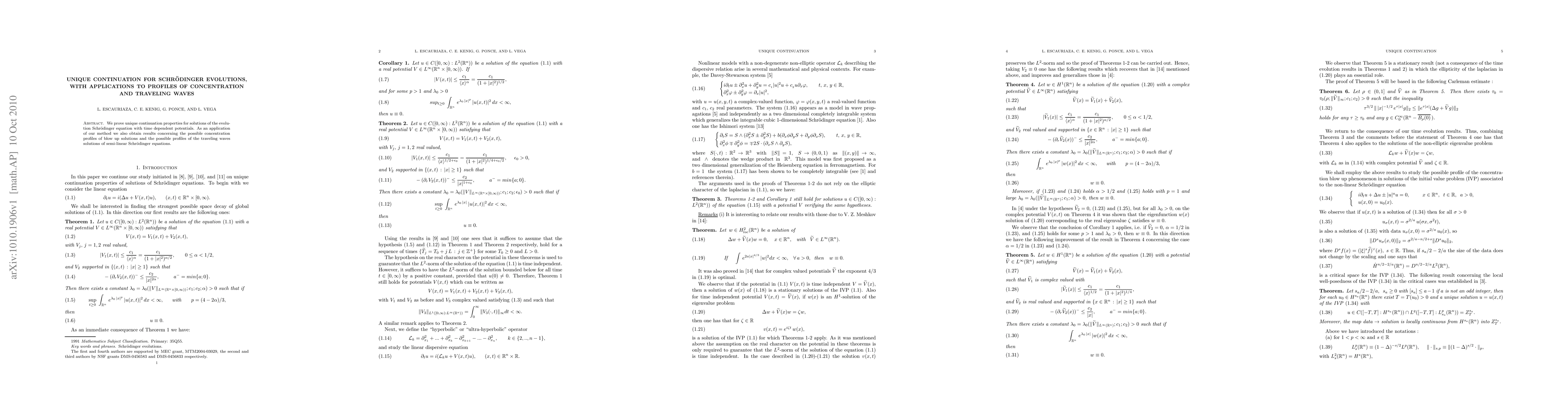 We prove unique continuation properties for solutions of the evolution Schr\"odinger equation with time dependent potentials. As an application of our method we also obtain results concerning the possible concentration profiles of blow up solutions and the possible profiles of the traveling waves solutions of semi-linear Schr\"odinger equations.