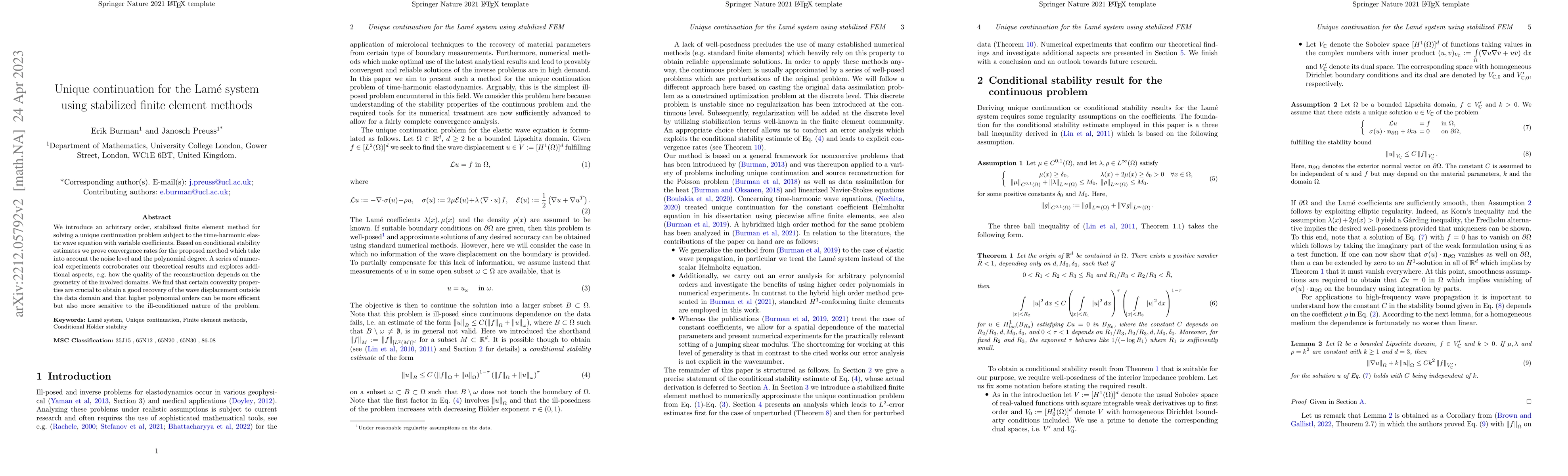 We introduce an arbitrary order, stabilized finite element method for solving a unique continuation problem subject to the time-harmonic elastic wave equation with variable coefficients. Based on conditional stability estimates we prove convergence rates for the proposed method which take into account the noise level and the polynomial degree. A series of numerical experiments corroborates our theoretical results and explores additional aspects, e.g. how the quality of the reconstruction depends on the geometry of the involved domains. We find that certain convexity properties are crucial to obtain a good recovery of the wave displacement outside the data domain and that higher polynomial orders can be more efficient but also more sensitive to the ill-conditioned nature of the problem.