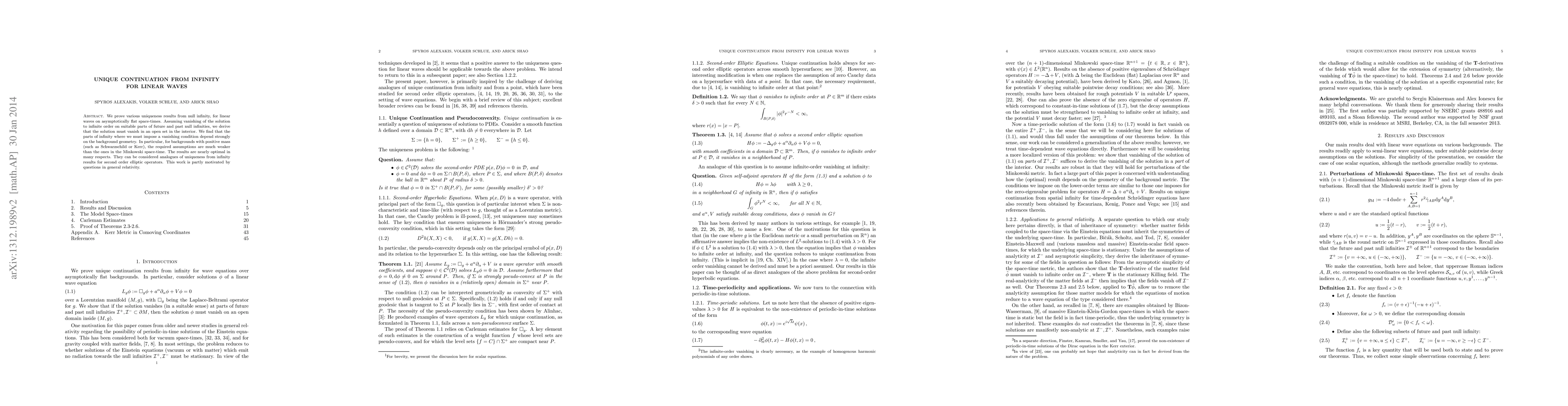 We prove various uniqueness results from null infinity, for linear waves on asymptotically flat space-times. Assuming vanishing of the solution to infinite order on suitable parts of future and past null infinities, we derive that the solution must vanish in an open set in the interior. We find that the parts of infinity where we must impose a vanishing condition depend strongly on the background geometry. In particular, for backgrounds with positive mass (such as Schwarzschild or Kerr), the required assumptions are much weaker than the ones in the Minkowski space-time. The results are nearly optimal in many respects. They can be considered analogues of uniqueness from infinity results for second order elliptic operators. This work is partly motivated by questions in general relativity.