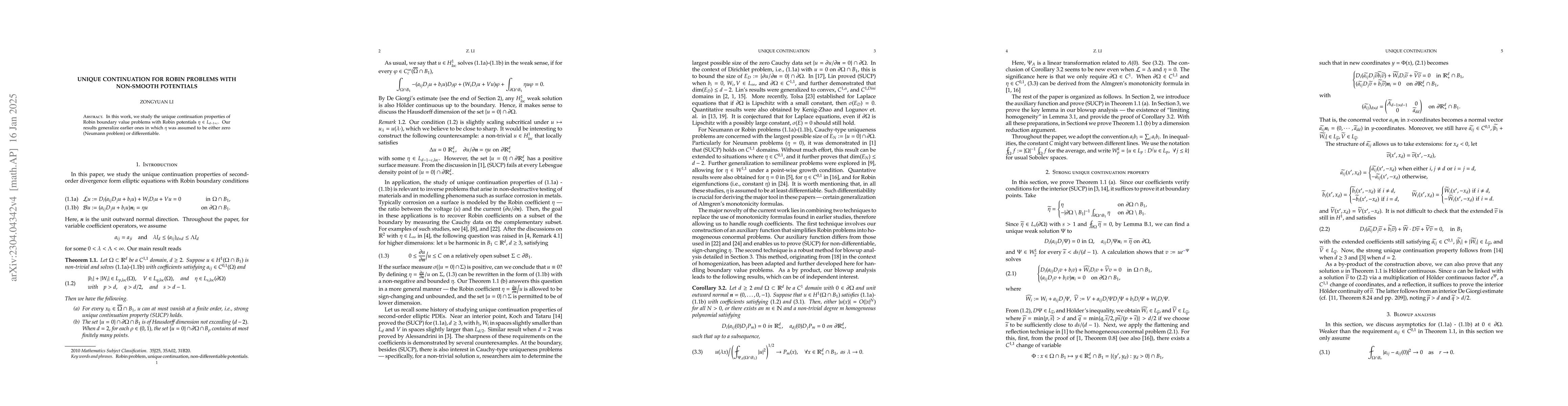This paper investigates unique continuation properties for Robin boundary value problems with Robin potentials in $L_{d-1+\varepsilon}$, extending previous results that assumed $\eta$ to be either zero or differentiable. The findings generalize earlier unique continuation theorems.