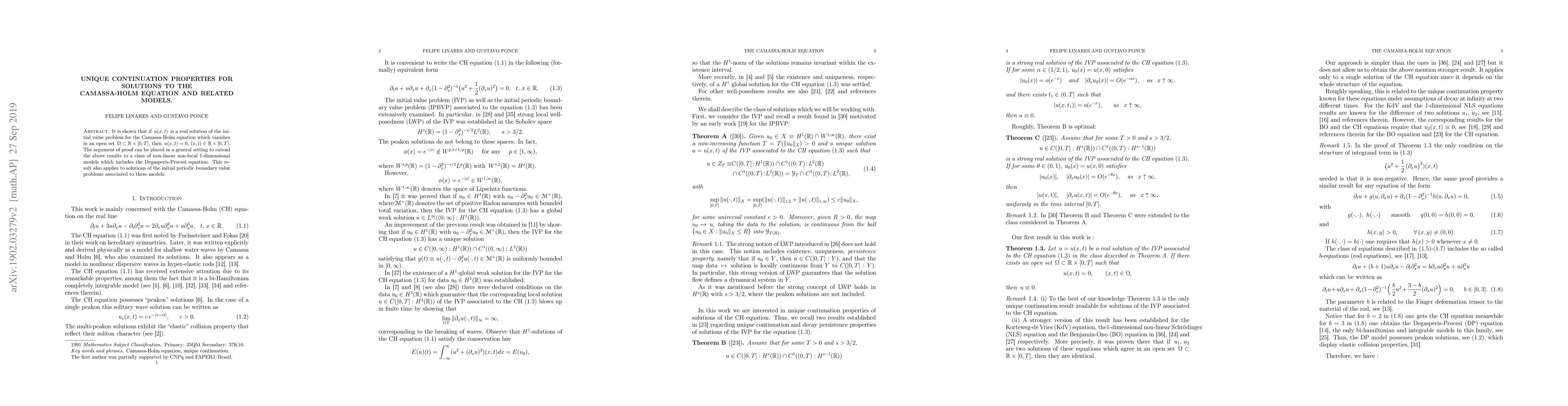 This research demonstrates that solutions to the Camassa-Holm equation, which vanish in an open set of real numbers times an interval, are zero everywhere within that interval. This 'unique continuation property' also extends to the Degasperis-Procesi equation and other similar non-local 1D models. The proof applies to both initial and periodic boundary value problems.