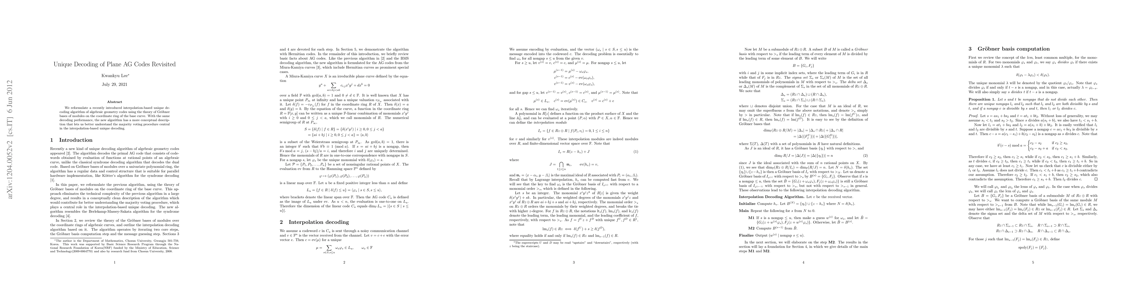 We reformulate a recently introduced interpolation-based unique decoding algorithm of algebraic geometry codes using the theory of Gr\"obner bases of modules on the coordinate ring of the base curve. With the same decoding performance, the new algorithm has a more conceptual description that lets us better understand the majority voting procedure central in the interpolation-based unique decoding.