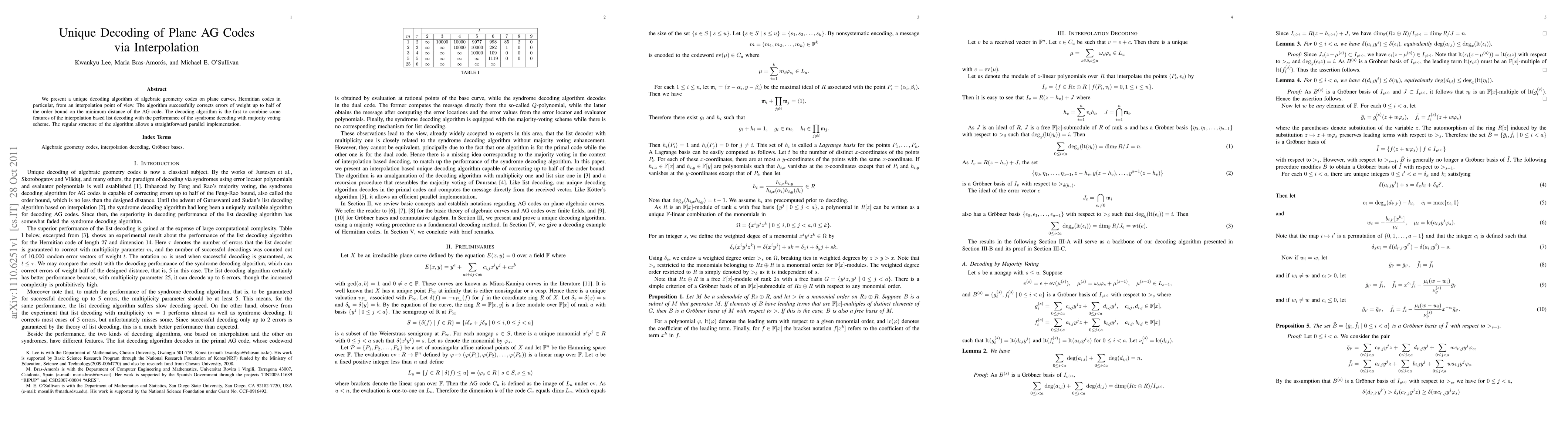 This paper introduces a unique decoding algorithm for algebraic geometry codes on plane curves, particularly Hermitian codes, that corrects errors up to half the order bound on the minimum distance. It combines interpolation-based list decoding with syndrome decoding and majority voting, offering a straightforward parallel implementation.