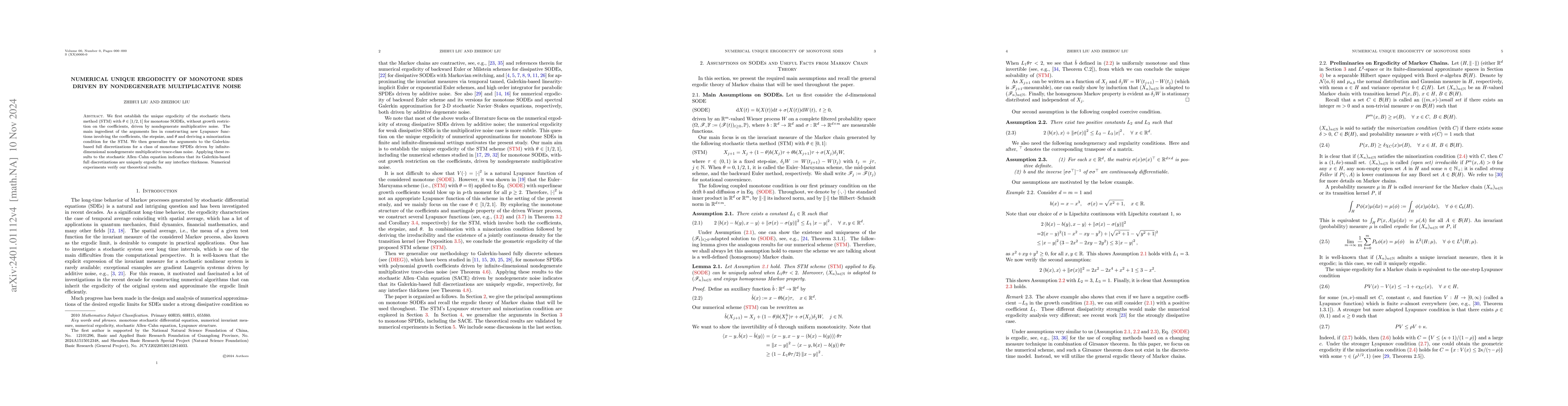 This paper establishes the unique ergodicity of the stochastic theta method (STM) for monotone stochastic differential equations (SODEs) with nondegenerate multiplicative noise. The authors introduce new Lyapunov functions and prove irreducibility and strong Feller properties, extending their findings to temporal drift-implicit Euler methods for monotone stochastic partial differential equations (SPDEs). Numerical experiments confirm the theoretical results.
