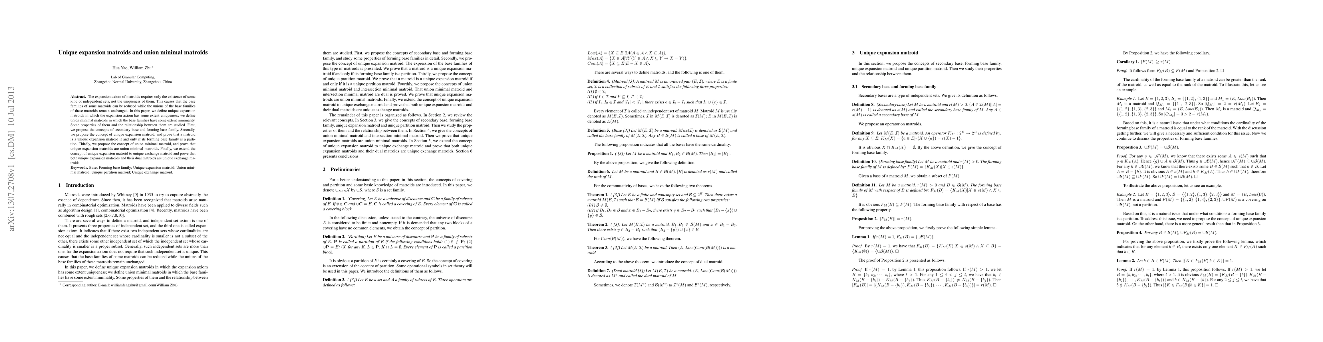 This paper introduces the concepts of unique expansion matroids and union minimal matroids, studying their properties and relationships. It defines unique expansion matroids as those where the expansion axiom has some uniqueness, and union minimal matroids as those where base families have some minimality. It proves that unique expansion matroids are union minimal and extends the concept to unique exchange matroids.