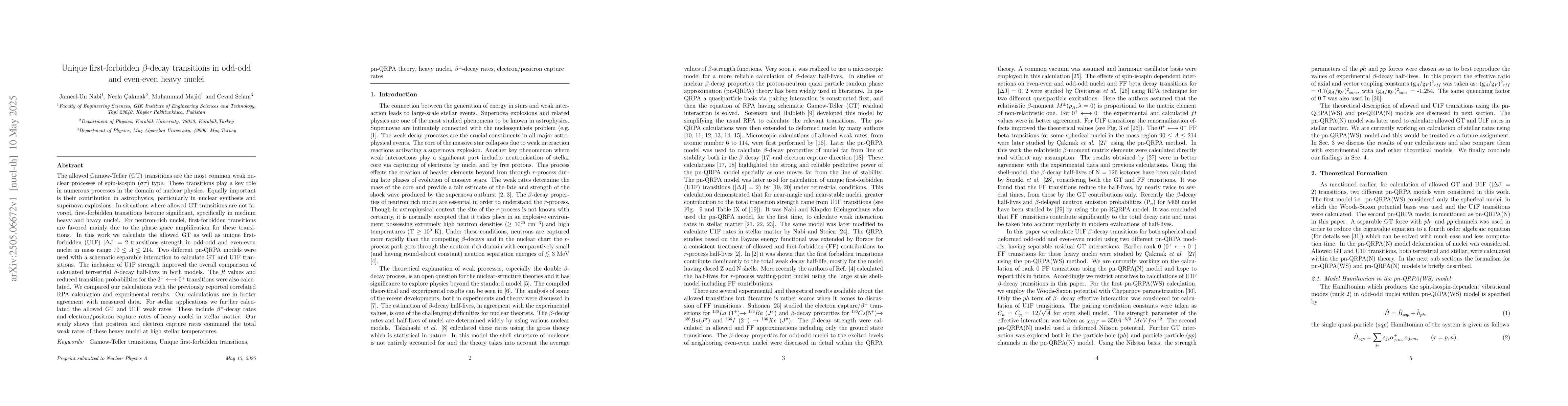 The work presents a detailed calculation of allowed GT and unique first-forbidden (U1F) |ΔJ| = 2 transitions strength in odd-odd and even-even nuclei, demonstrating the importance of U1F transitions in neutron-rich nuclei and their relevance in stellar environments.