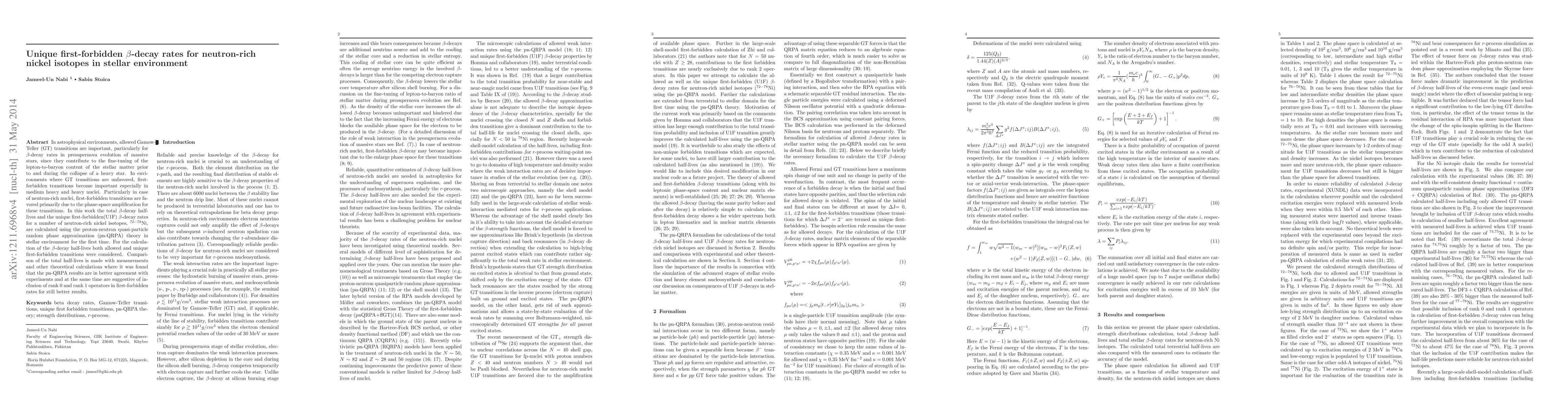 In astrophysical environments, allowed Gamow-Teller (GT) transitions are important, particularly for $\beta$-decay rates in presupernova evolution of massive stars, since they contribute to the fine-tuning of the lepton-to-baryon content of the stellar matter prior to and during the collapse of a heavy star. In environments where GT transitions are unfavored, first-forbidden transitions become important especially in medium heavy and heavy nuclei. Particularly in case of neutron-rich nuclei, first-forbidden transitions are favored primarily due to the phase-space amplification for these transitions. In this work the total $\beta$-decay half-lives and the unique first-forbidden(U1F) $\beta$-decay rates for a number of neutron-rich nickel isotopes, $^{72-78}$Ni, are calculated using the proton-neutron quasi-particle random phase approximation (pn-QRPA) theory in stellar environment for the first time. For the calculation of the $\beta$-decay half-lives both allowed and unique first-forbidden transitions were considered. Comparison of the total half-lives is made with measurements and other theoretical calculations where it was found that the pn-QRPA results are in better agreement with experiments and at the same time are suggestive of inclusion of rank 0 and rank 1 operators in first-forbidden rates for still better results.