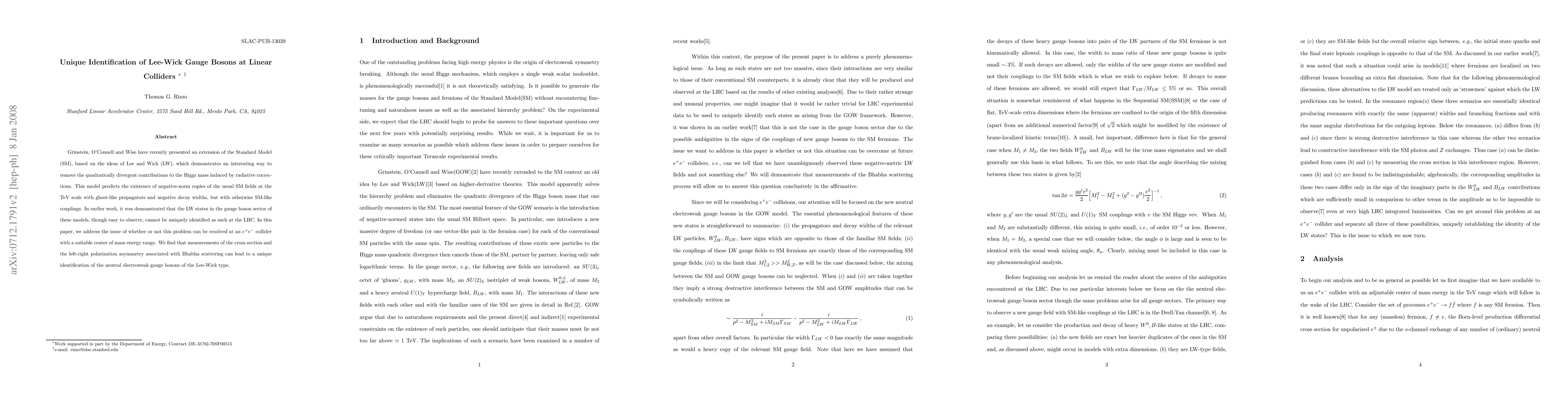 This paper investigates the possibility of uniquely identifying Lee-Wick gauge bosons at linear colliders, finding that measurements of cross section and left-right polarization asymmetry in Bhabha scattering can achieve this identification, unlike at the LHC.