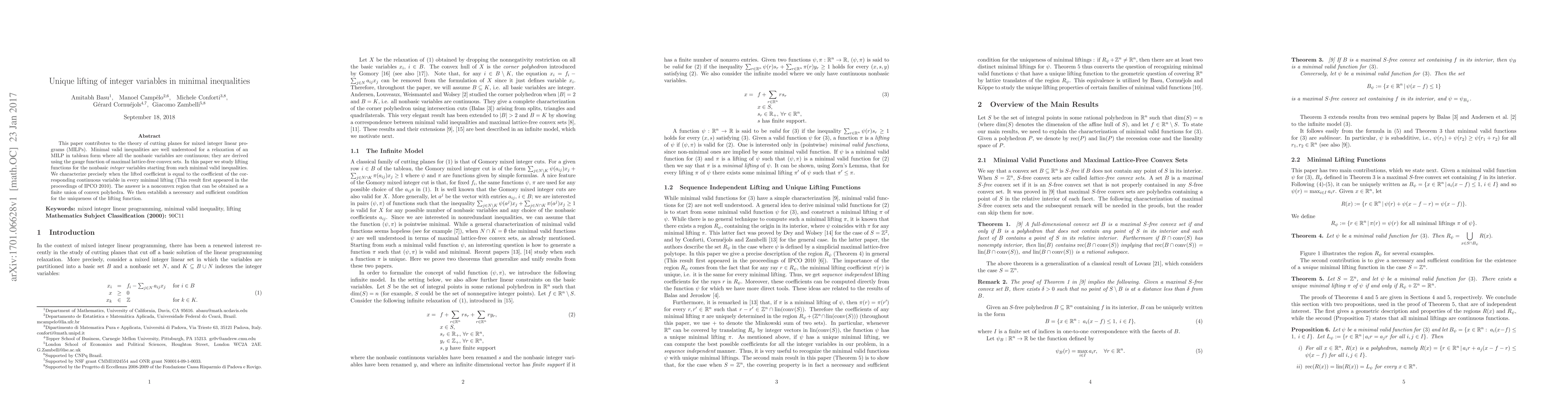 This paper contributes to the theory of cutting planes for mixed integer linear programs (MILPs). Minimal valid inequalities are well understood for a relaxation of an MILP in tableau form where all the nonbasic variables are continuous; they are derived using the gauge function of maximal lattice-free convex sets. In this paper we study lifting functions for the nonbasic integer variables starting from such minimal valid inequalities. We characterize precisely when the lifted coefficient is equal to the coefficient of the corresponding continuous variable in every minimal lifting. The answer is a nonconvex region that can be obtained as a finite union of convex polyhedra. We then establish a necessary and sufficient condition for the uniqueness of the lifting function.