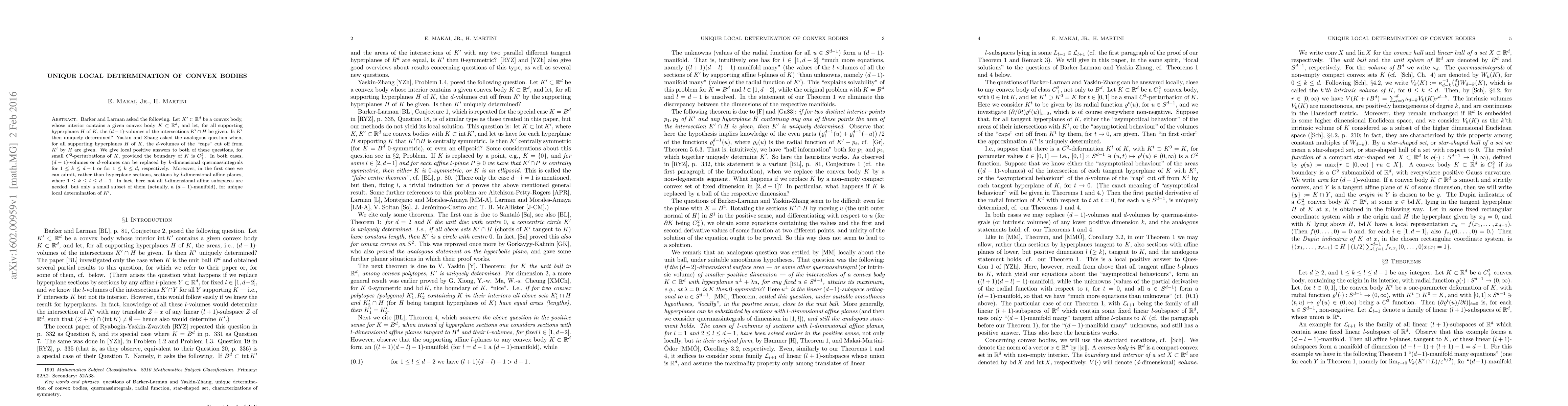 Research shows that a convex body can be uniquely determined based on local information about its supporting hyperplanes, even with small perturbations.