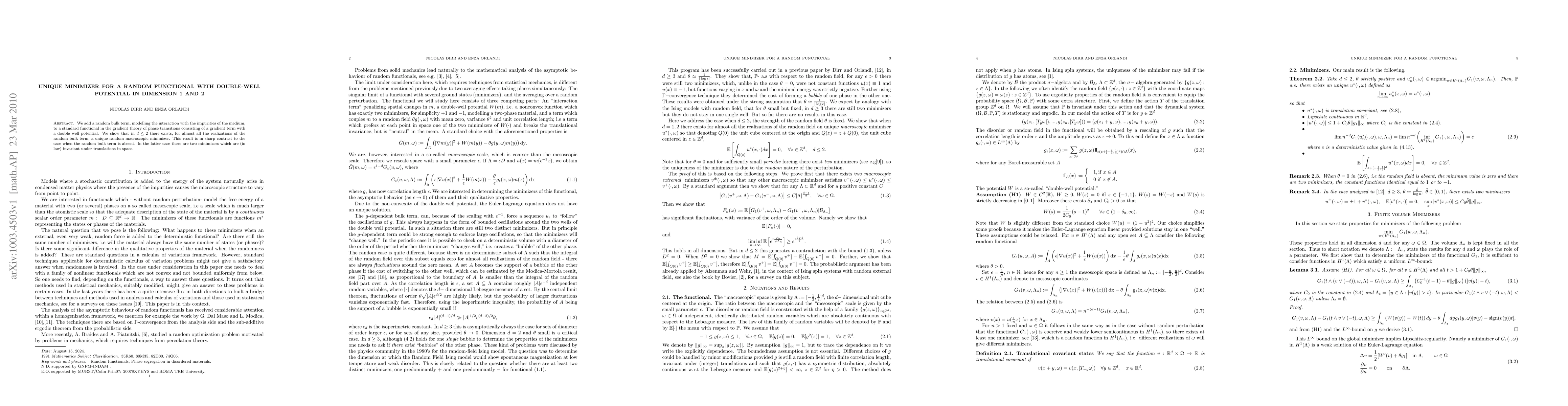 We add a random bulk term, modelling the interaction with the impurities of the medium, to a standard functional in the gradient theory of phase transitions consisting of a gradient term with a double well potential. We show that in $d\le2$ there exists, for almost all the realizations of the random bulk term, a unique random macroscopic minimizer. This result is in sharp contrast to the case when the random bulk term is absent. In the latter case there are two minimizers which are (in law) invariant under translations in space.