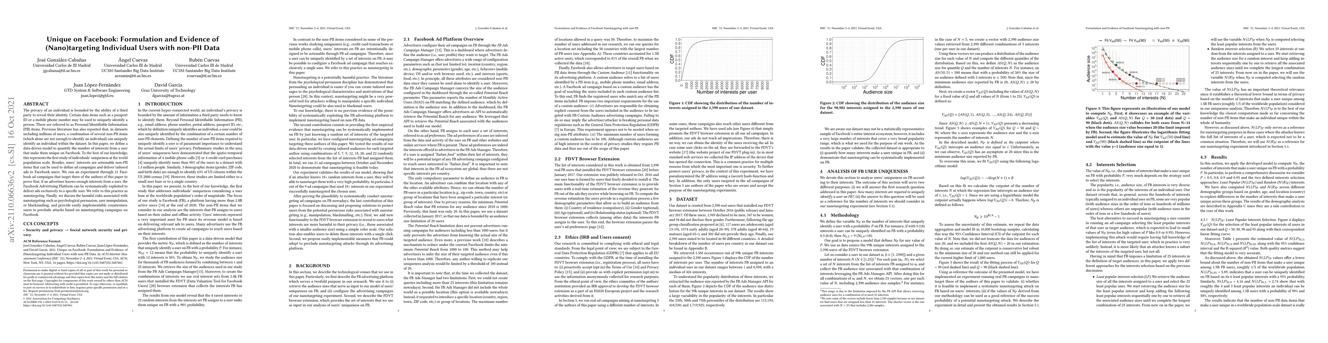 This paper explores how non-PII data can uniquely identify individuals on Facebook, defining a model to quantify user uniqueness. It demonstrates through 21 ad campaigns that nanotargeting—using enough user interests—can deliver ads to specific individuals, highlighting risks like manipulation, and proposes countermeasures to mitigate these threats.