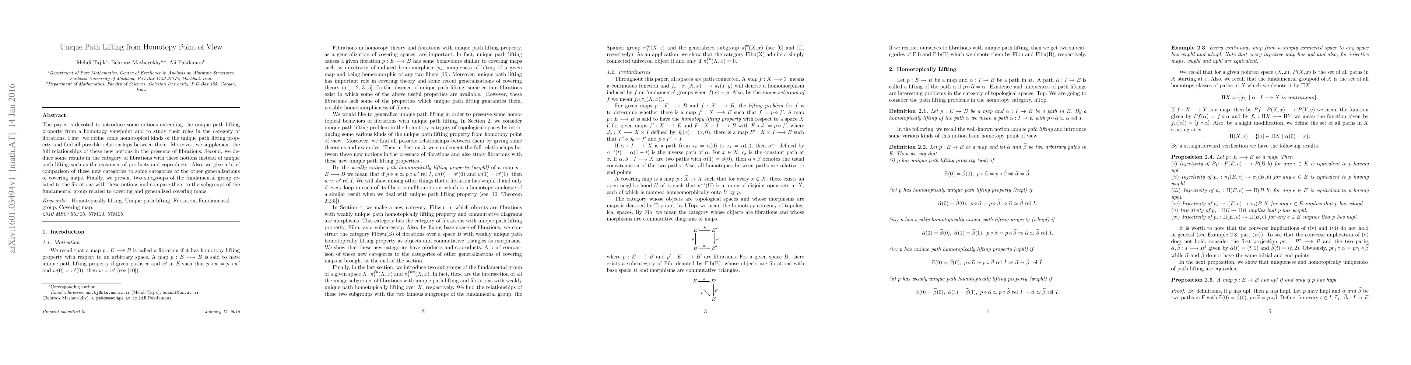 This paper introduces homotopical extensions of the unique path lifting property in fibrations, explores their interrelations, and examines their implications in the category of fibrations, including the existence of products and coproducts. It also compares these new notions with other generalizations of covering maps and analyzes related subgroups of the fundamental group.