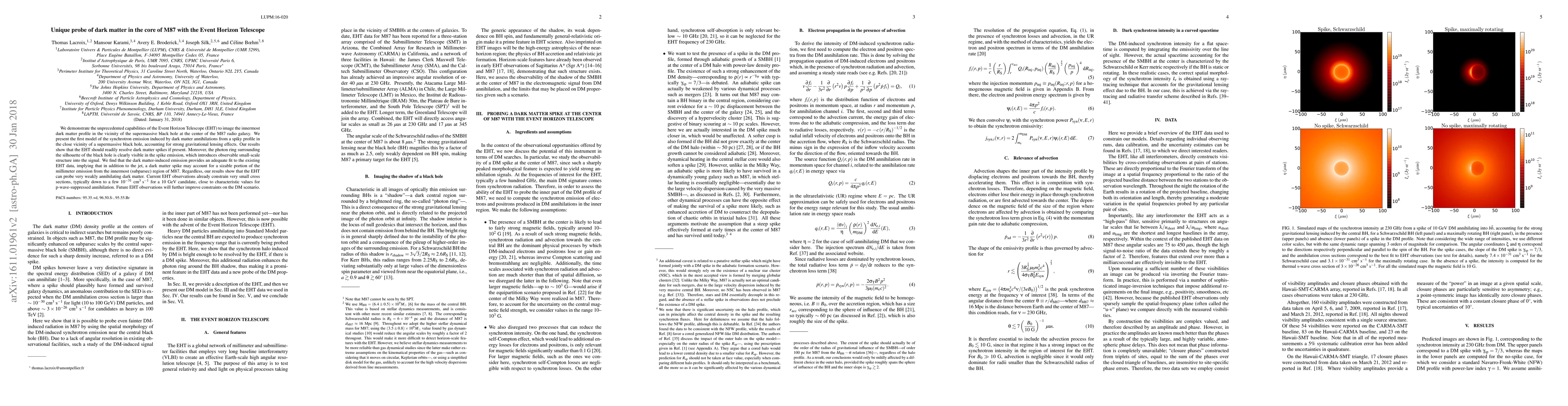 The Event Horizon Telescope (EHT) has demonstrated its ability to image the dark matter profile near the supermassive black hole at the center of M87, revealing potential dark matter spikes and their effects on synchrotron emission. Current EHT observations constrain the cross-section of weakly annihilating dark matter, approaching values typical for p-wave-suppressed annihilation, with future observations promising even tighter constraints.