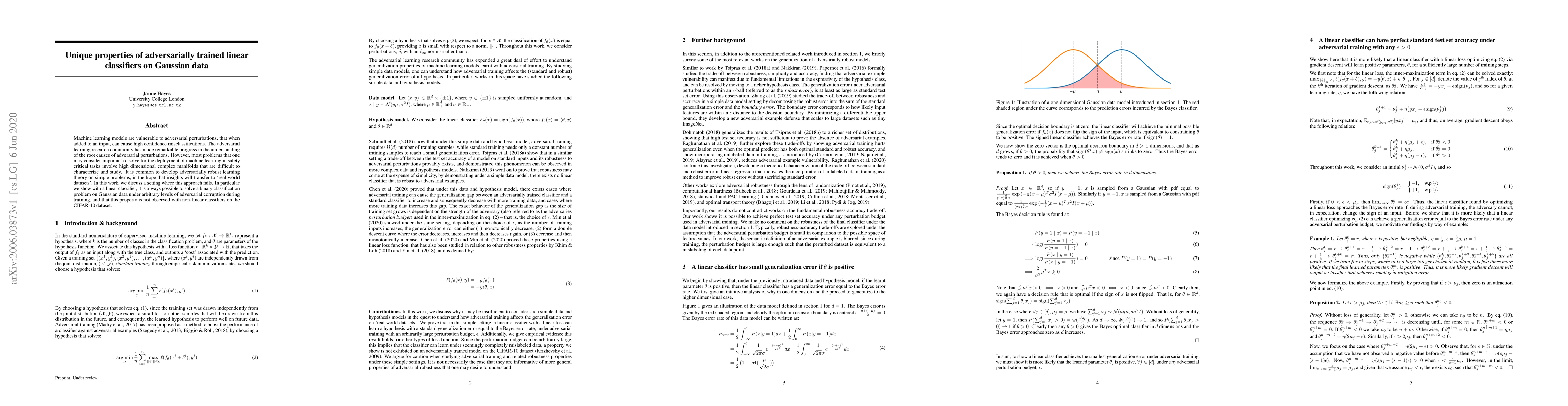 Researchers found that linear classifiers can learn to be robust against adversarial attacks on Gaussian data, but not on complex datasets like CIFAR-10. This challenges the idea that insights from simple problems can transfer to real-world machine learning applications.