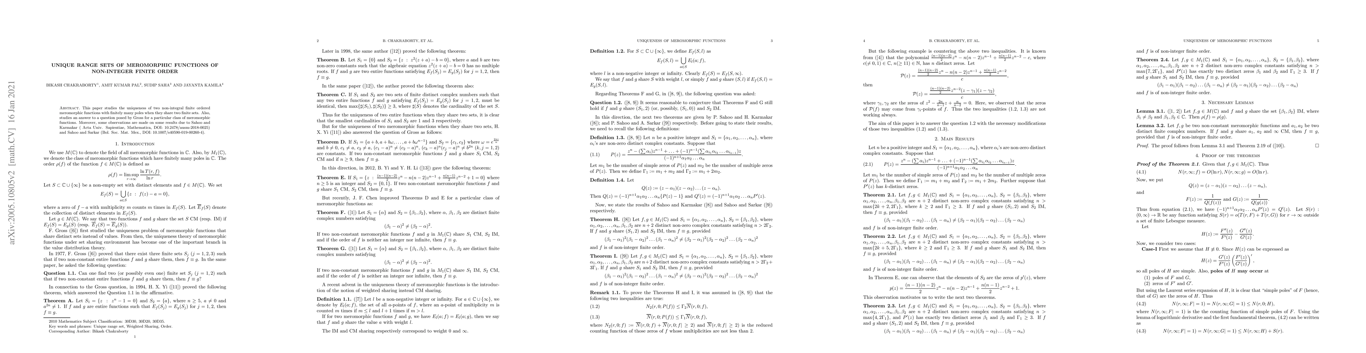 This paper studies the uniqueness of two non-integral finite ordered meromorphic functions with finitely many poles when they share two finite sets. Also, studies an answer to a question posed by Gross for a particular class of meromorphic functions. Moreover, some observations are made on some results due to Sahoo and Karmakar ( Acta Univ. Sapientiae, Mathematica, DOI: 10.2478/ausm-2018-0025) and Sahoo and Sarkar (Bol. Soc. Mat. Mex., DOI: 10.1007/s40590-019-00260-4).