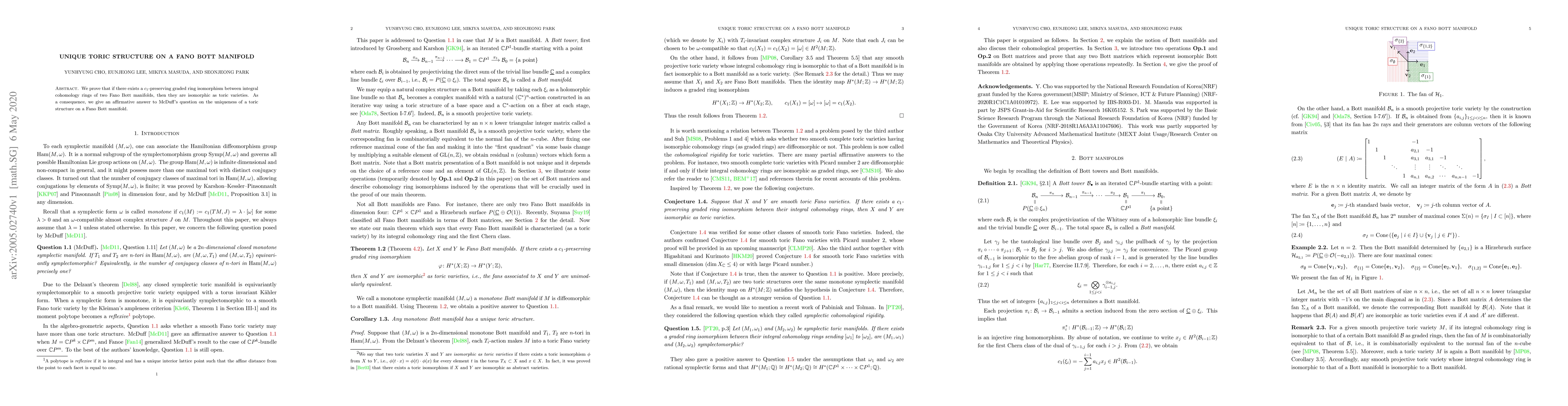 This paper proves that Fano Bott manifolds with $c_1$-preserving graded ring isomorphisms in their integral cohomology rings are isomorphic as toric varieties, thereby affirming McDuff's question on the uniqueness of toric structures on such manifolds.