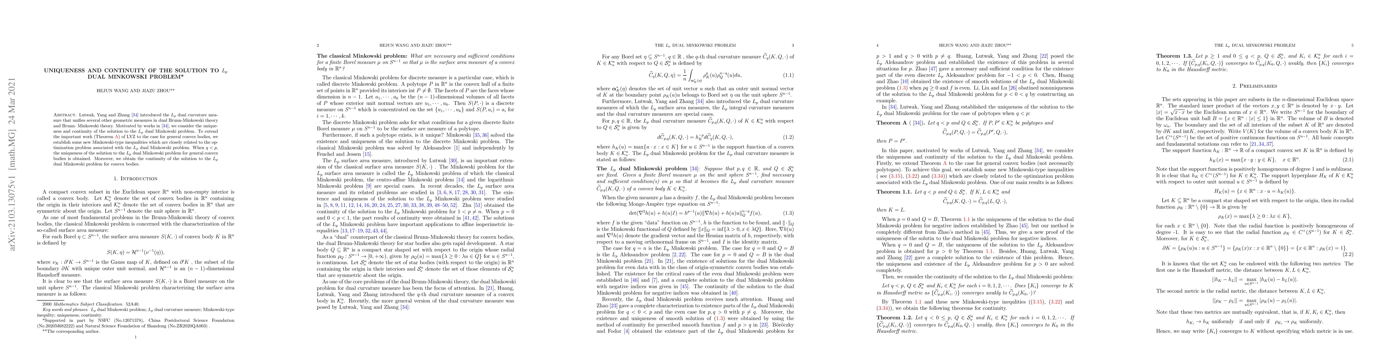 The work extends the uniqueness and continuity results from polytopes to general convex bodies, introducing novel Minkowski-type inequalities and providing a more comprehensive framework for the $L_p$ dual Minkowski problem.