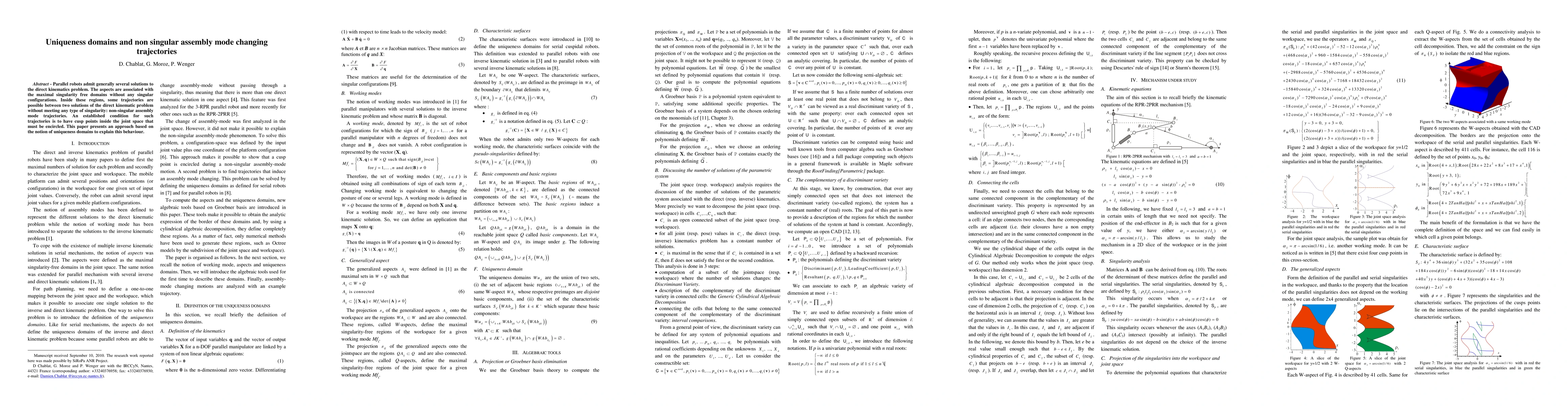 This paper explores the concept of non-singular assembly mode trajectories in parallel robots, which allow movement between solutions of the direct kinematics problem without encountering singularities. It introduces uniqueness domains to explain the behavior of these trajectories, emphasizing the necessity of encircling cusp points within the joint space.