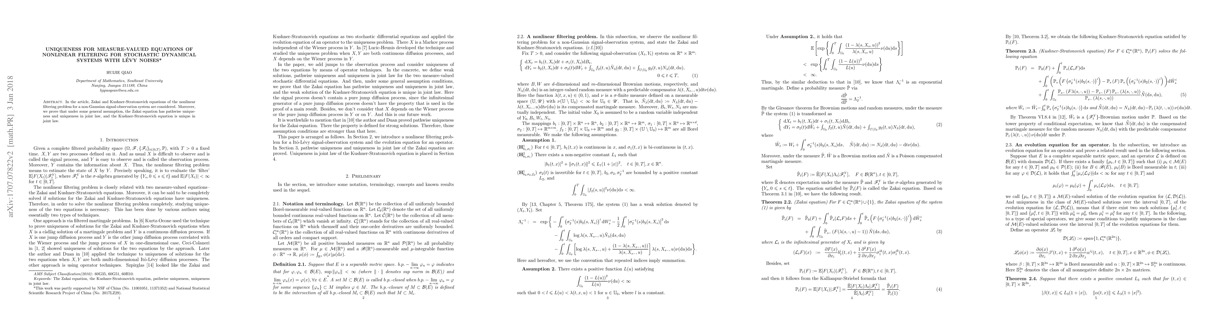 In the article, Zakai and Kushner-Stratonovich equations of the nonlinear filtering problem for a non-Gaussian signal-observation system are considered. Moreover, we prove that under some general assumption, the Zakai equation has pathwise uniqueness and uniqueness in joint law, and the Kushner-Stratonovich equation is unique in joint law.