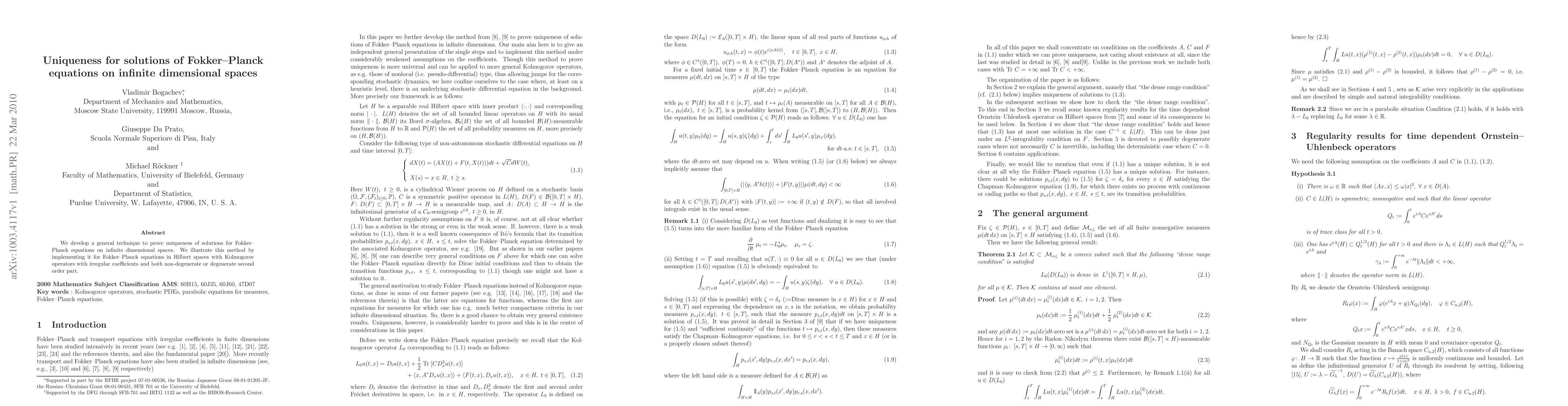 Summary: This paper presents a novel technique to establish uniqueness of solutions for Fokker-Planck equations in infinite dimensional Hilbert spaces, demonstrating its application to equations with irregular coefficients and both non-degenerate and degenerate second-order parts.
