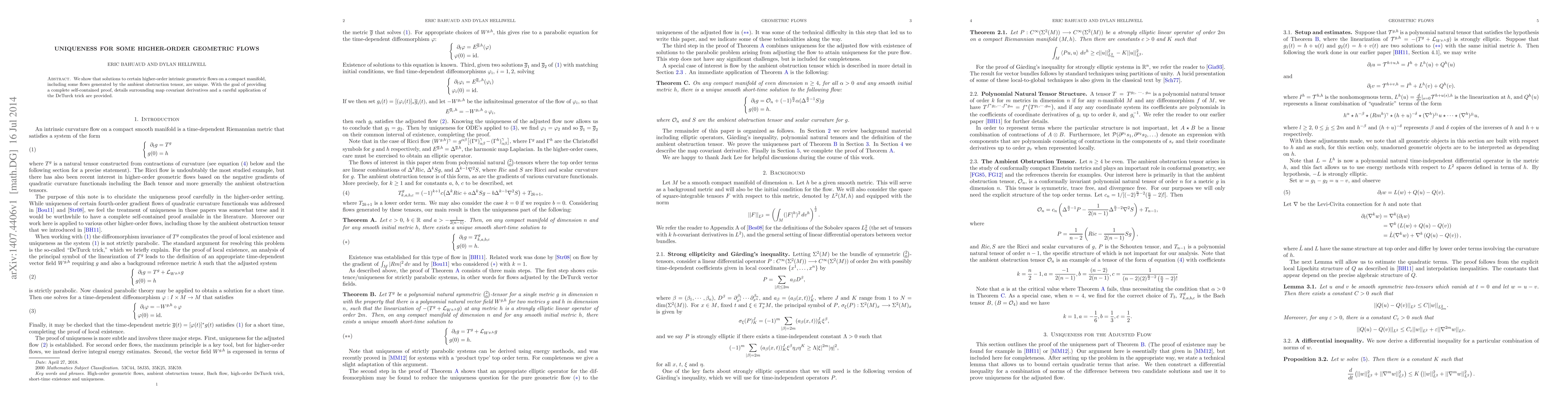 This paper demonstrates the uniqueness of solutions to specific higher-order intrinsic geometric flows on compact manifolds, including flows derived from the ambient obstruction tensor. The authors provide a detailed proof involving map covariant derivatives and the DeTurck trick.