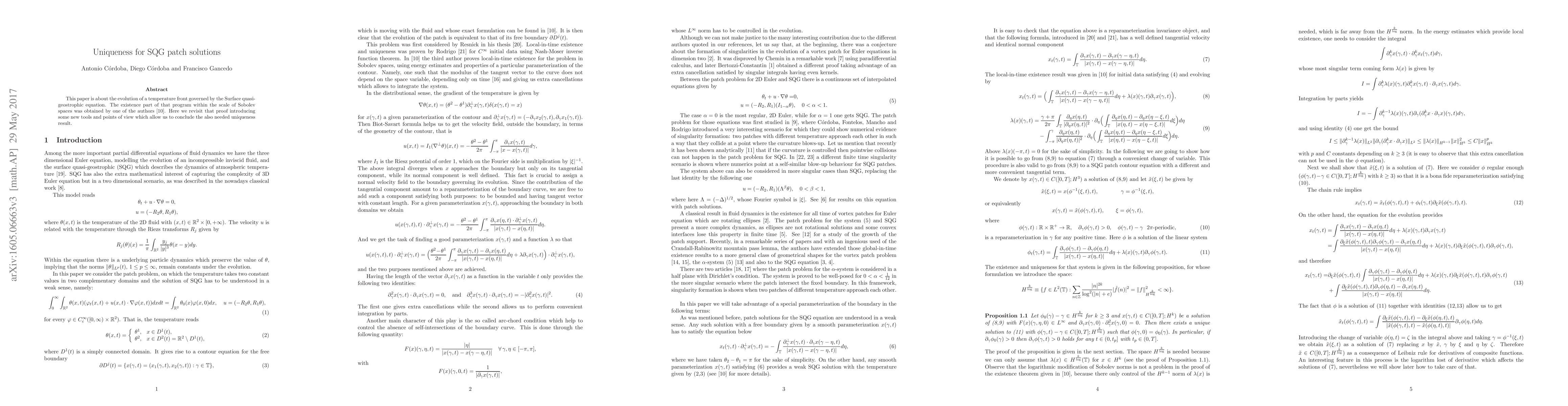 This research paper focuses on the Surface Quasi-Geostrophic (SQG) equation, specifically addressing the uniqueness of solutions for temperature front evolution. Building upon previous work that established existence in Sobolev spaces, this paper introduces new tools and perspectives to prove the uniqueness of these solutions.