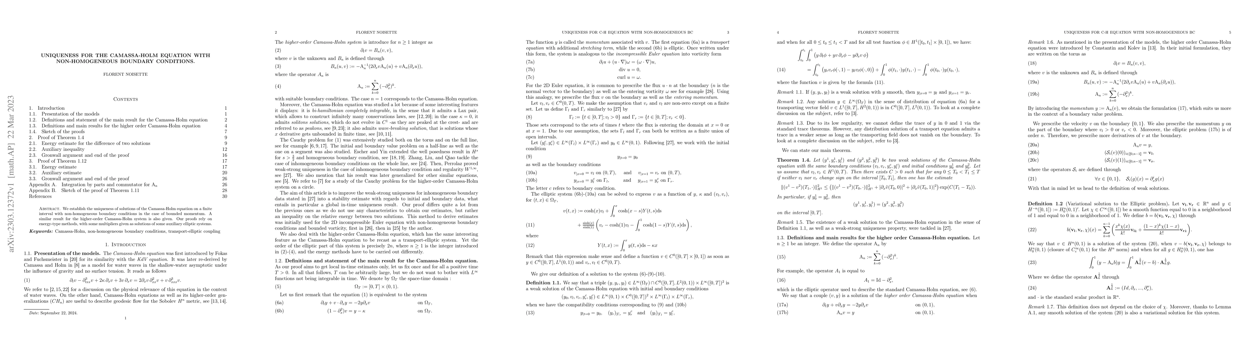 Summary: This paper proves the uniqueness of solutions for the Camassa-Holm equation on a finite interval with non-homogeneous boundary conditions under bounded momentum, utilizing energy-type methods and solutions of auxiliary elliptic systems. A similar uniqueness result is extended to the higher-order Camassa-Holm system.