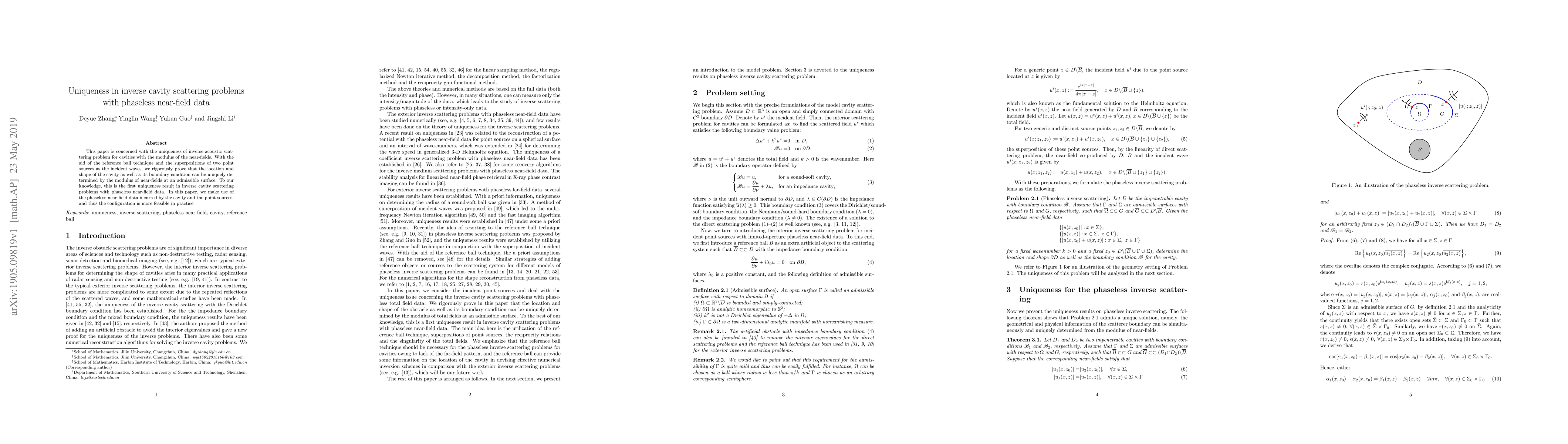 This paper proves the uniqueness in determining the location, shape, and boundary conditions of an acoustic cavity using only the modulus of near-field data, establishing the first such result for inverse cavity scattering problems with phaseless data. The method employs the reference ball technique and superpositions of two point sources.